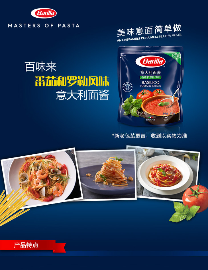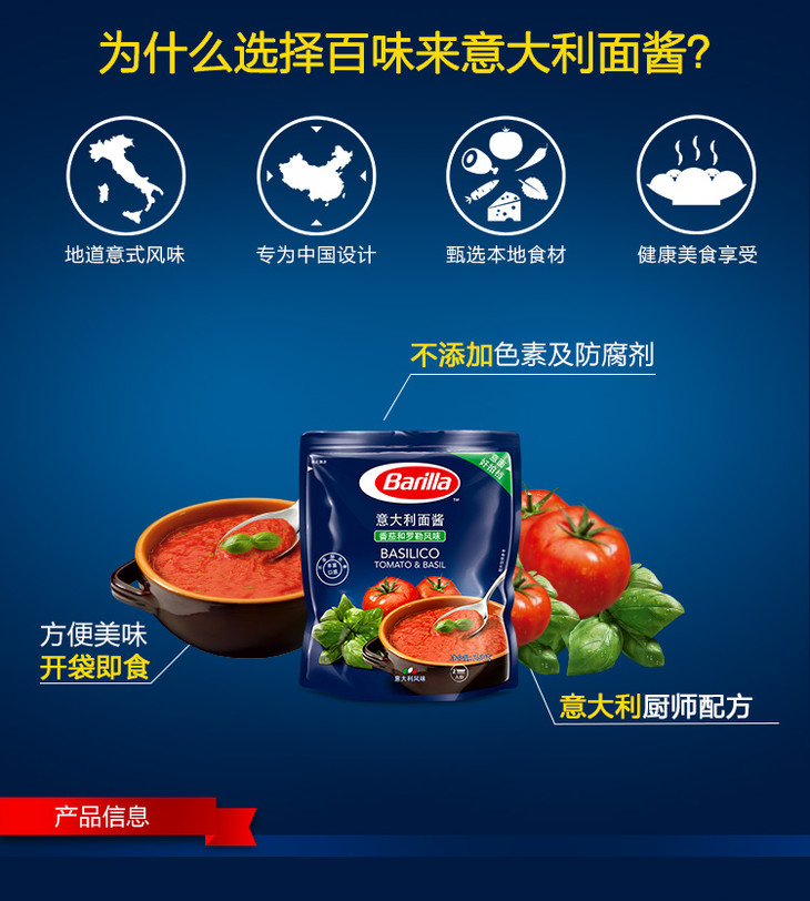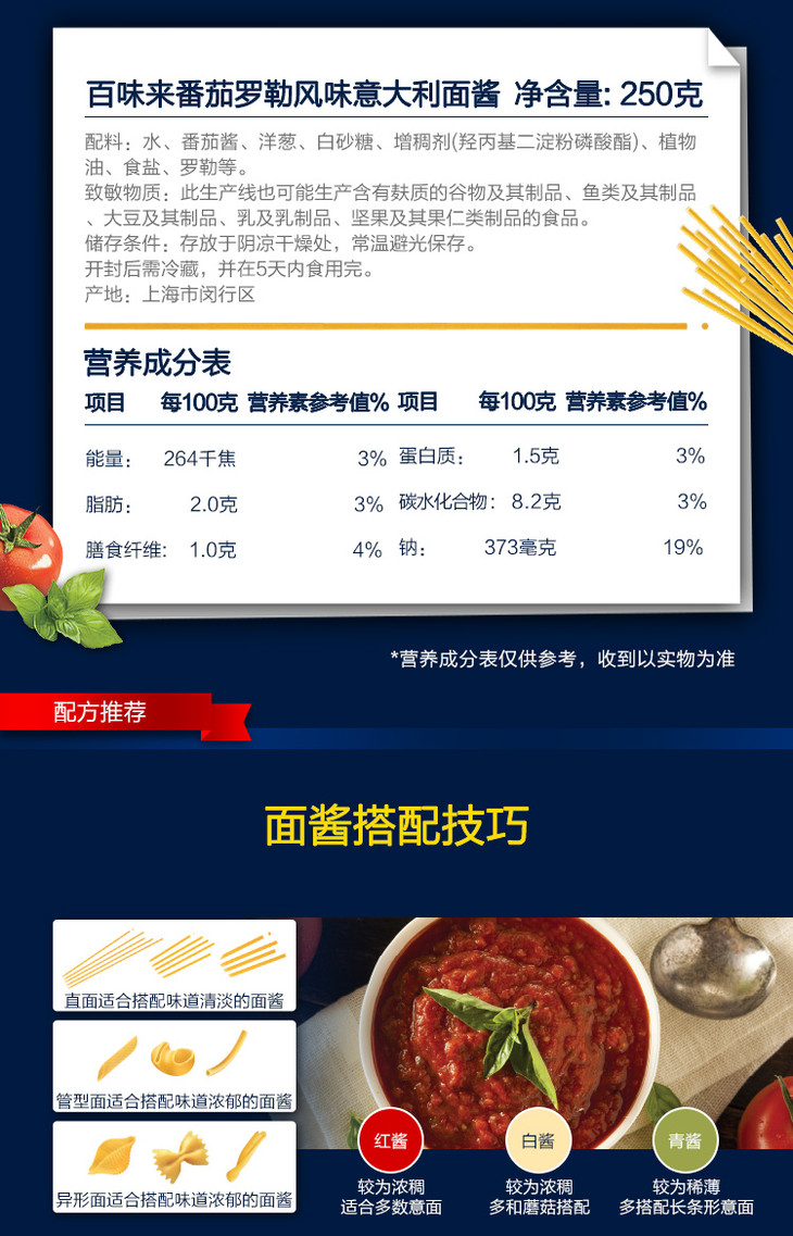 意大利百味来番茄和罗勒风味意大利面酱250g
