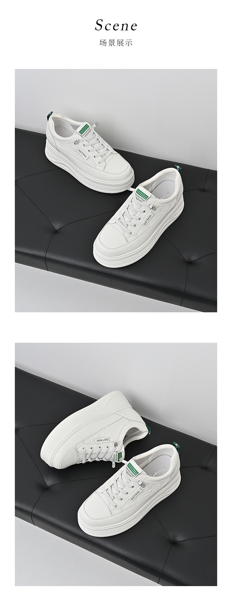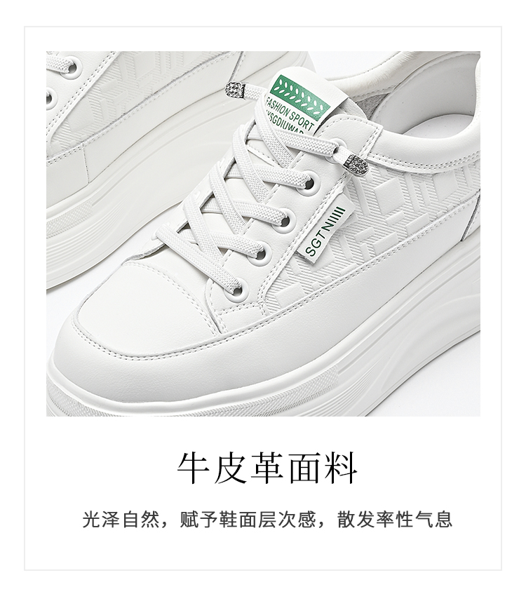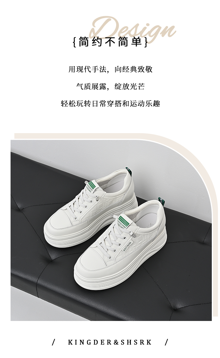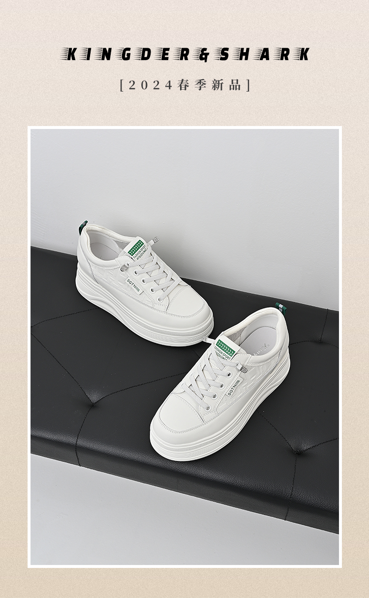 2024经典鲨春季女鞋新款经典厚底牛皮革小白鞋KW160-D17051