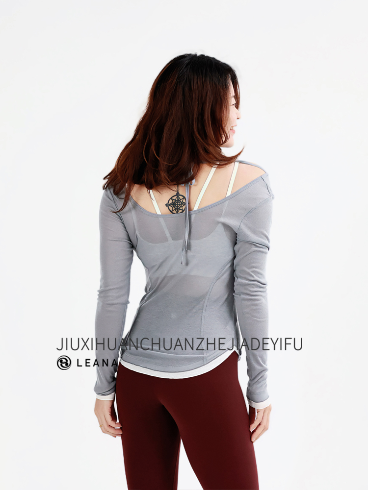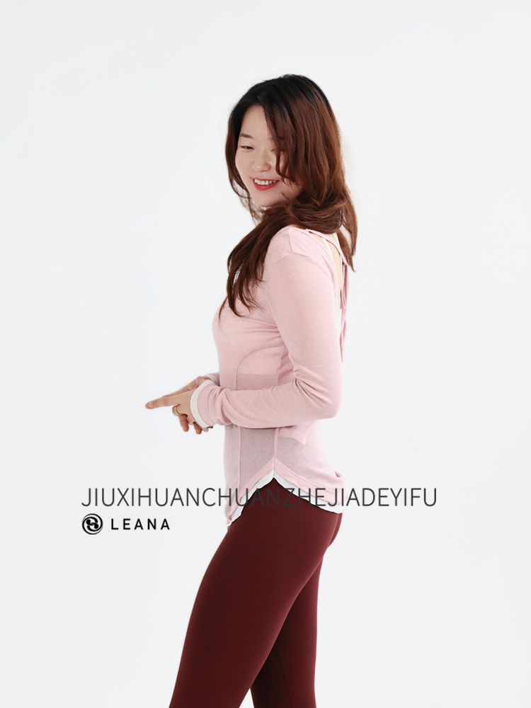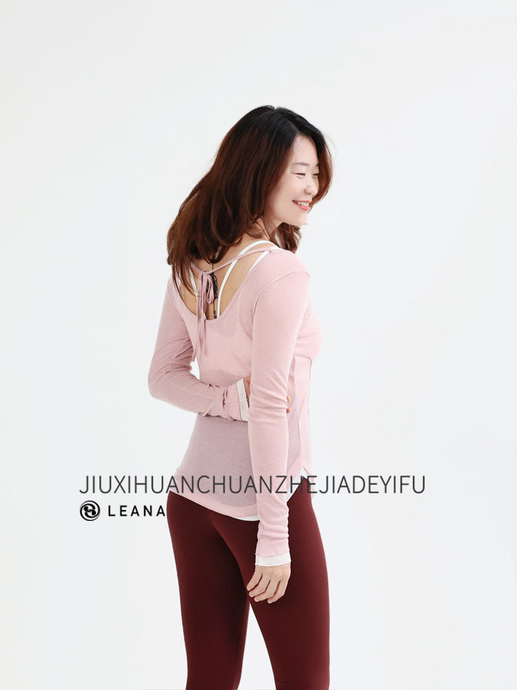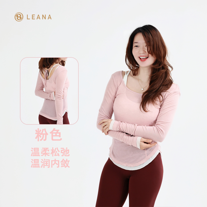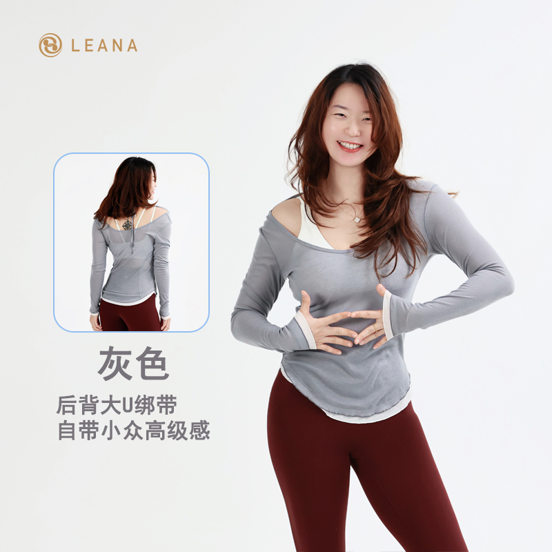 LEANA丽娜【后背大U绑带】高级感瑜伽罩衫撞色轻薄透气性感露背长袖运动罩衫LN25535