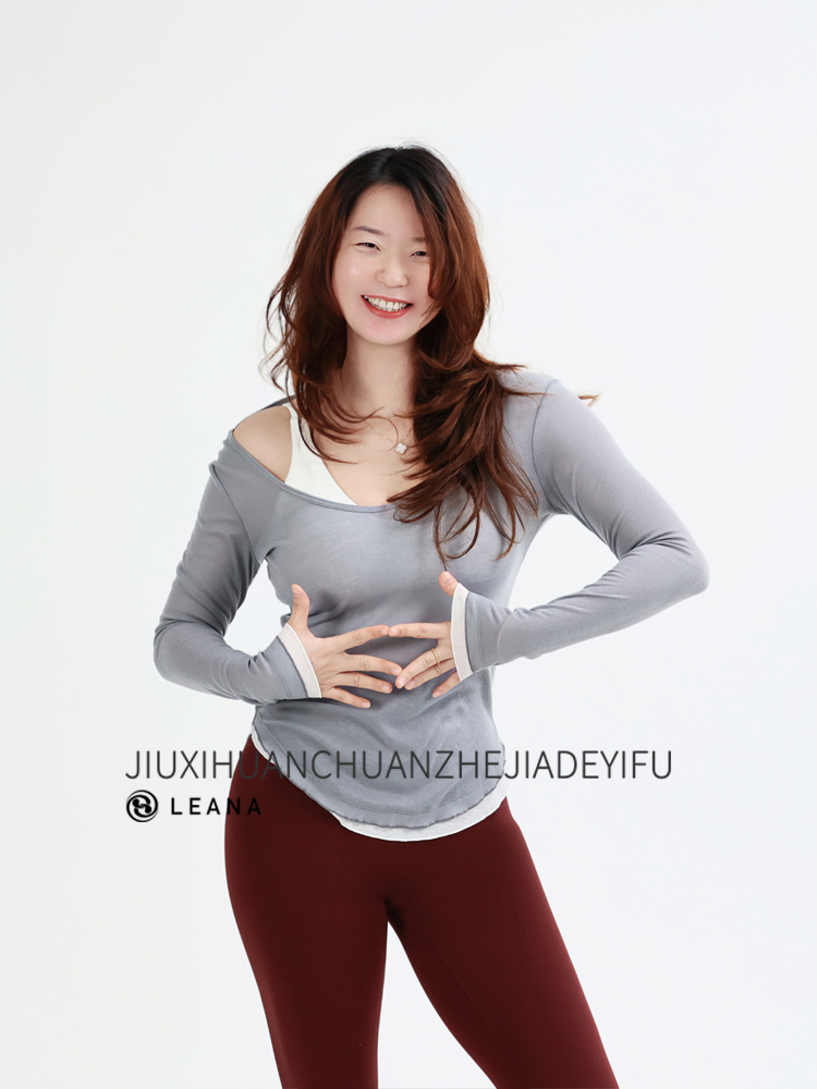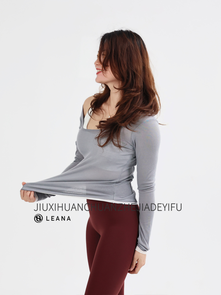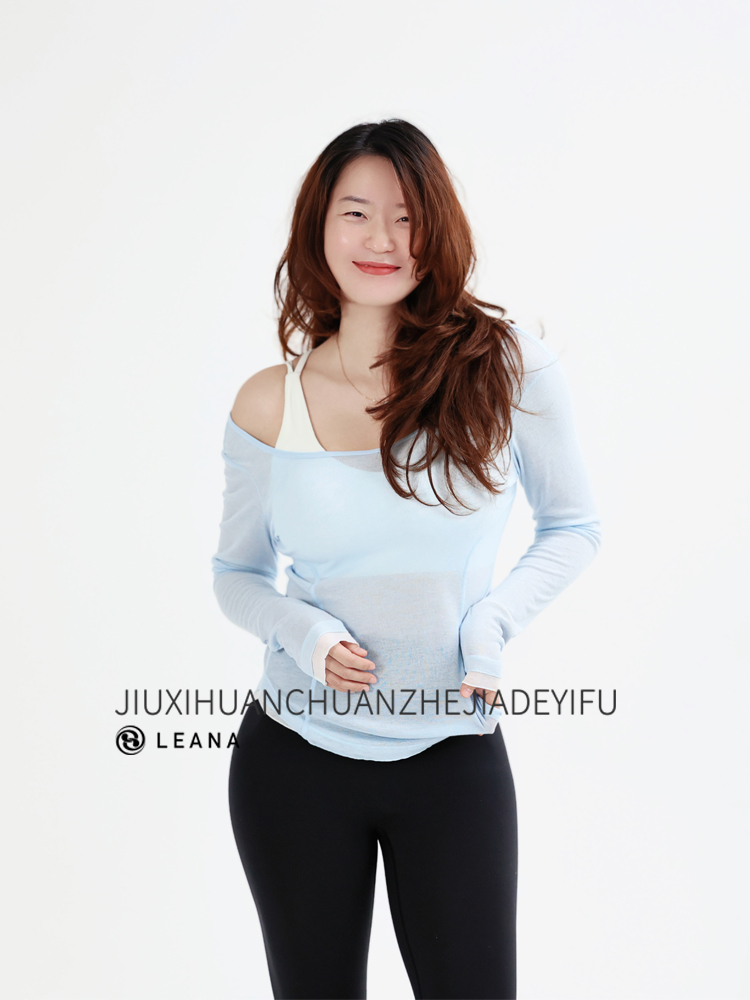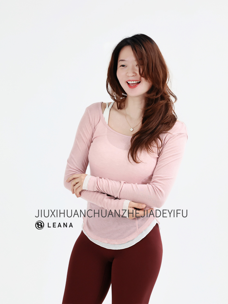LEANA丽娜【后背大U绑带】高级感瑜伽罩衫撞色轻薄透气性感露背长袖运动罩衫LN25535