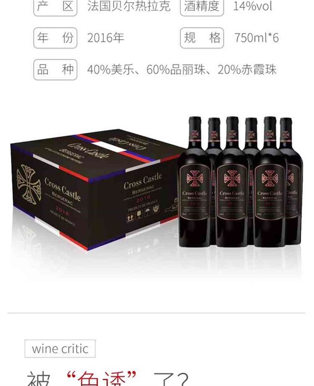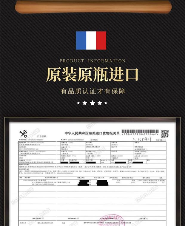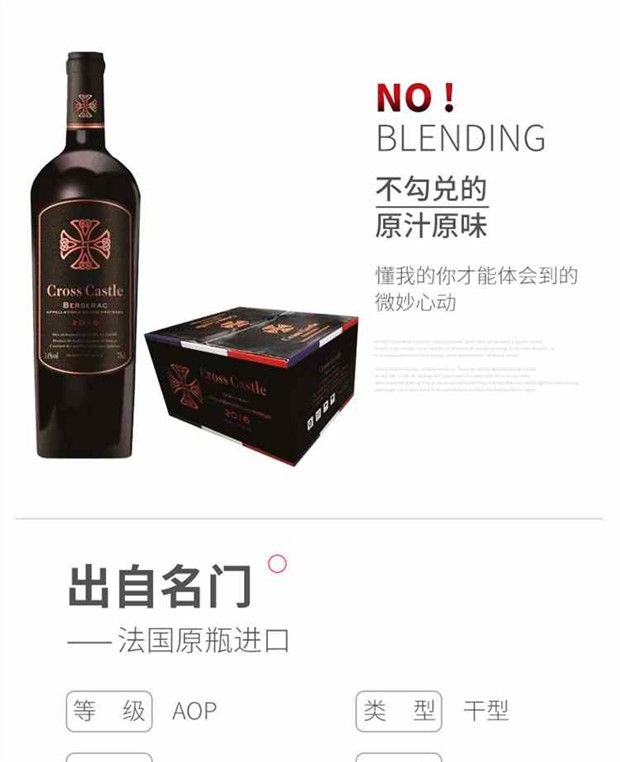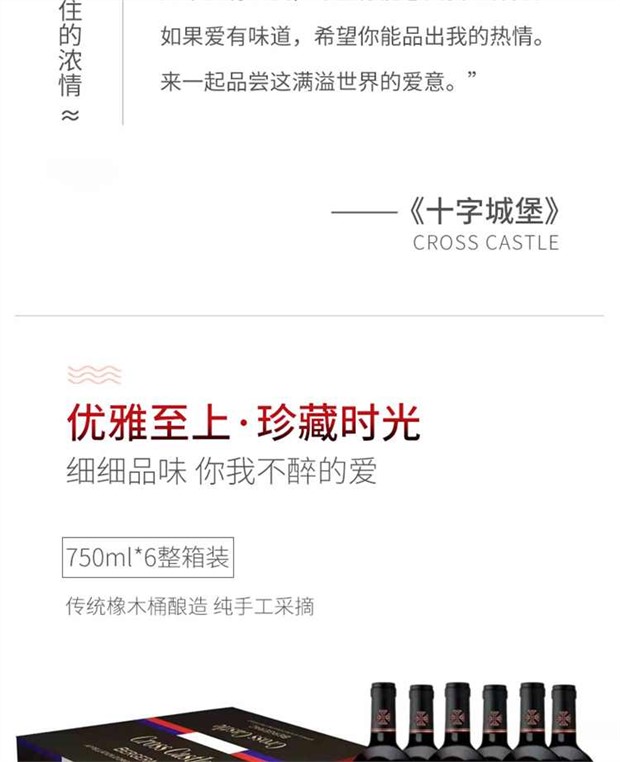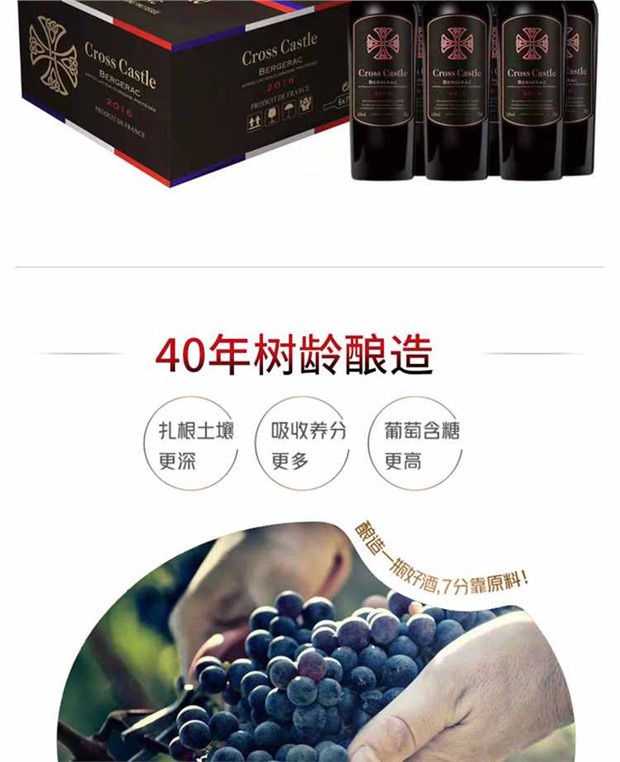 【产品名称】法国原瓶原装进口40年老藤十字城堡干红葡萄酒