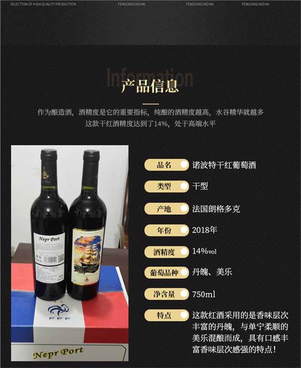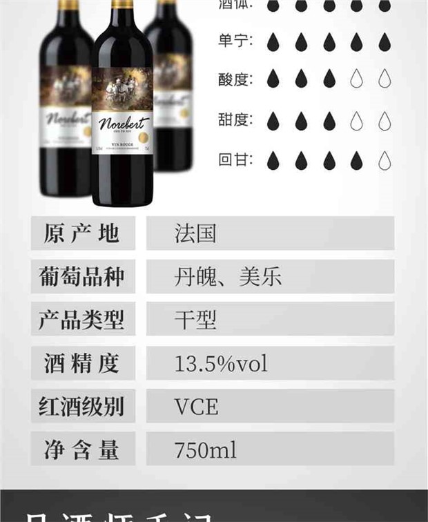 【产品名称】法国原瓶原装进口诺波特干红葡萄酒