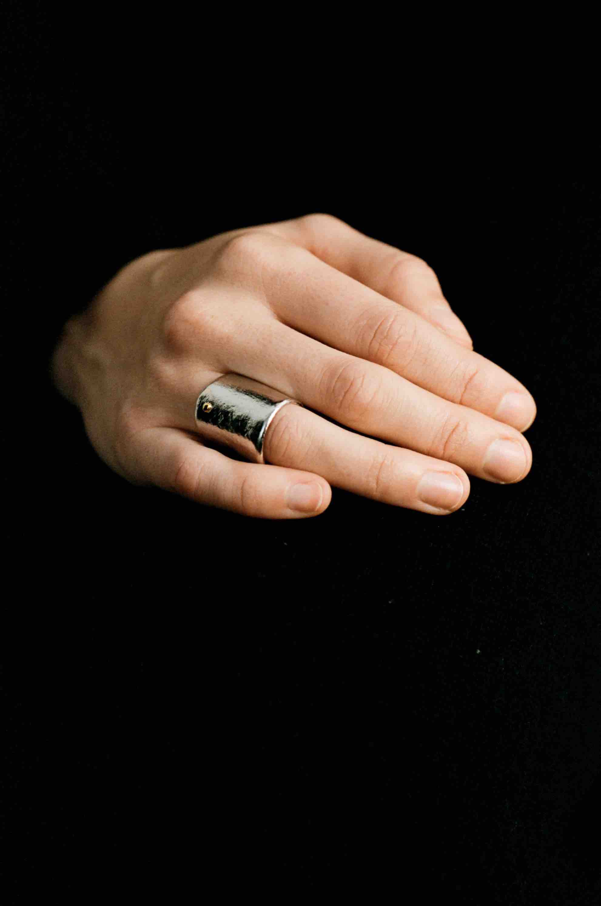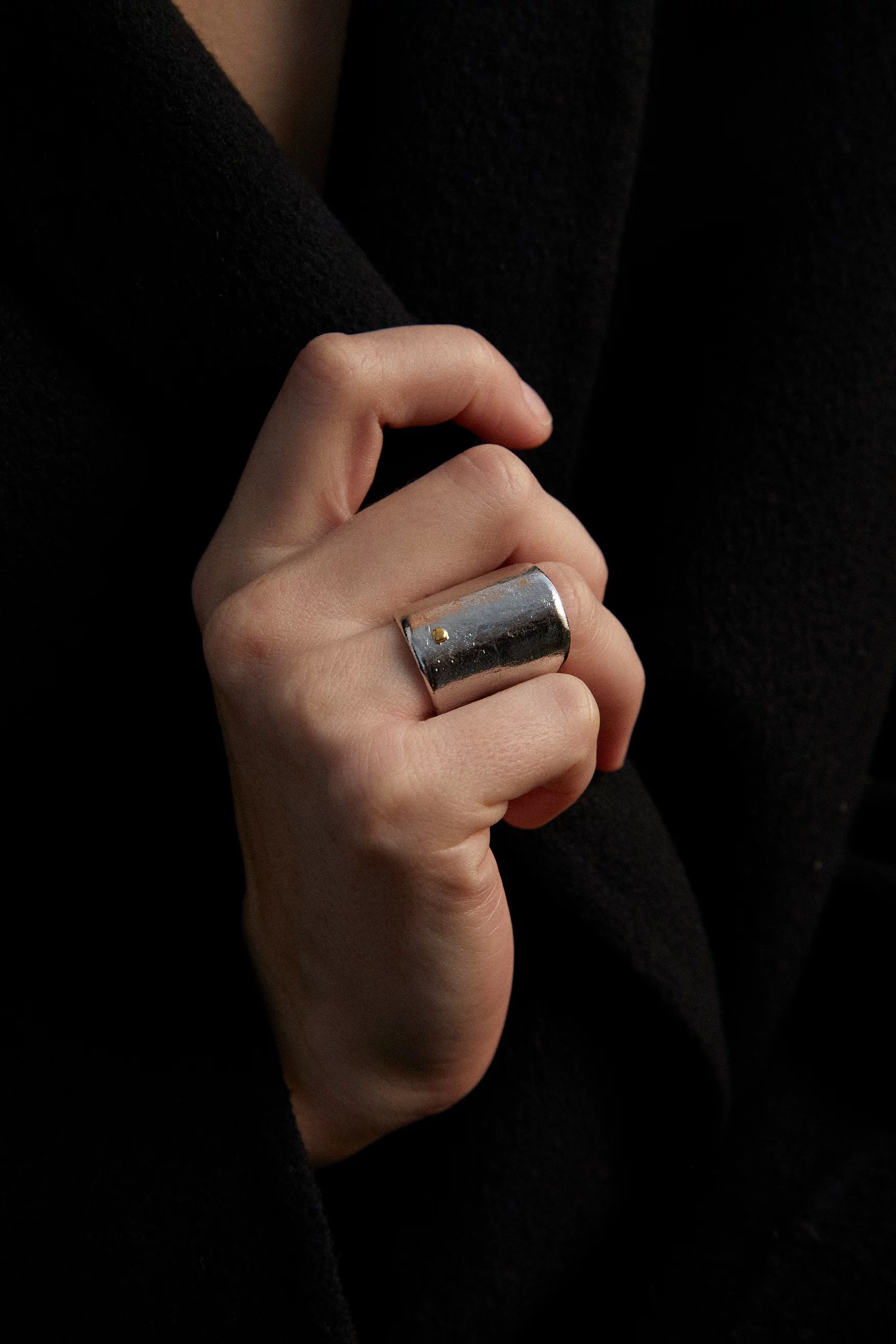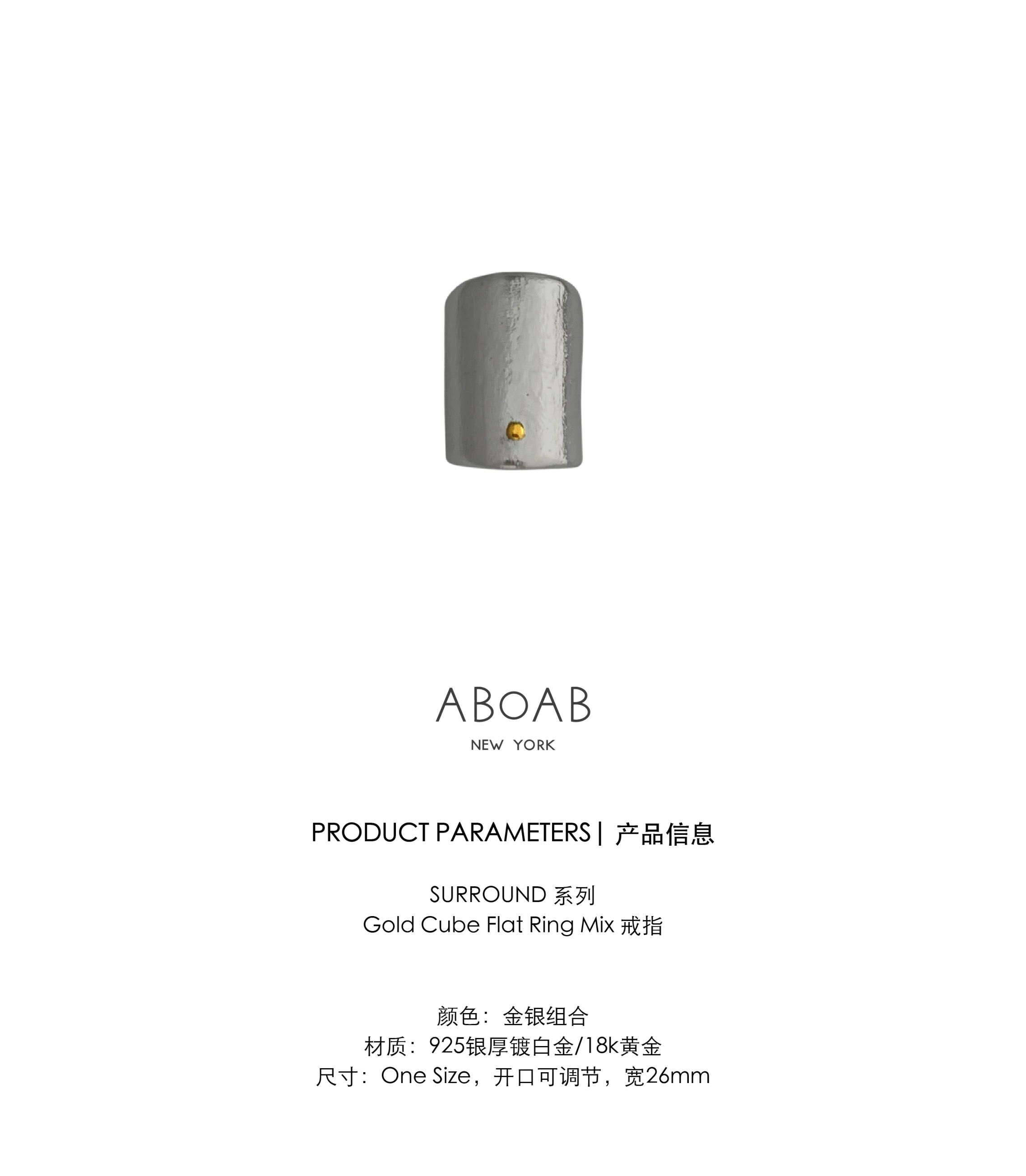 ABOAB|GOLD CUBE FLAT Ring MIX [ 开口戒指 金银混 ]