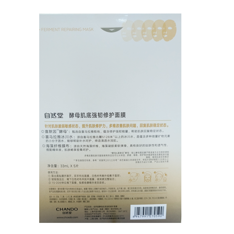 自然堂酵母肌底修护维稳面膜33mL*5pcs【30173546】
