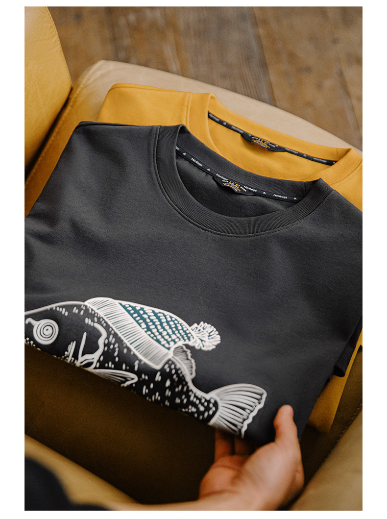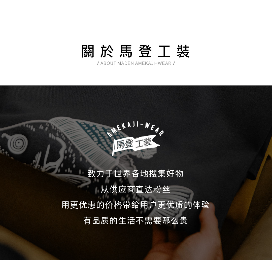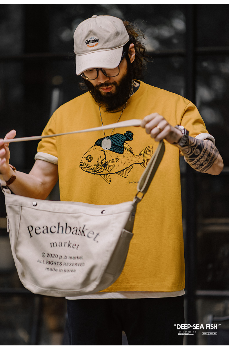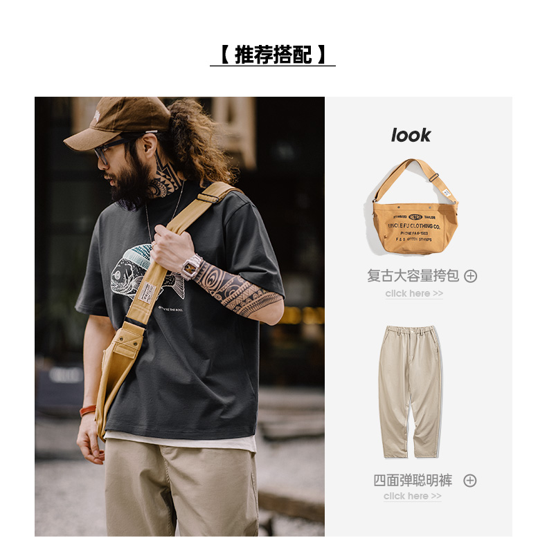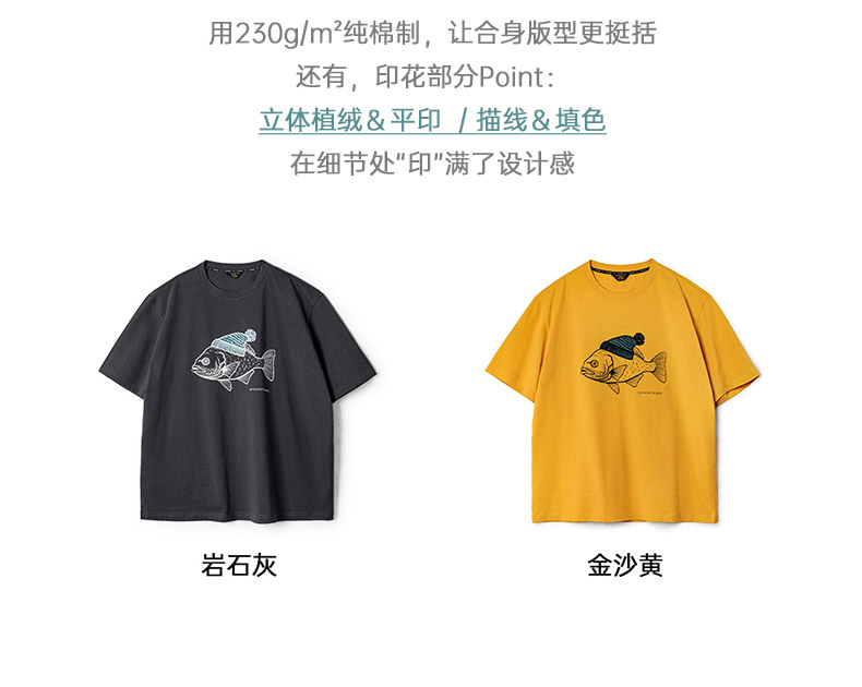 工装优选 美式复古深海鱼植绒印花T恤动物纯棉圆领短袖体恤男夏季
