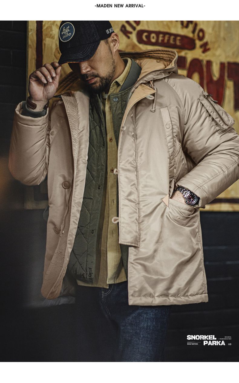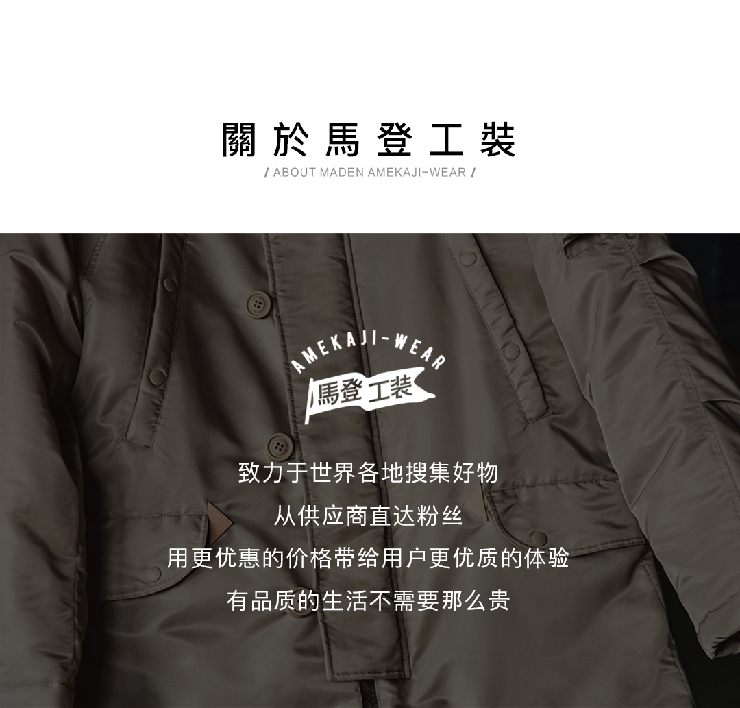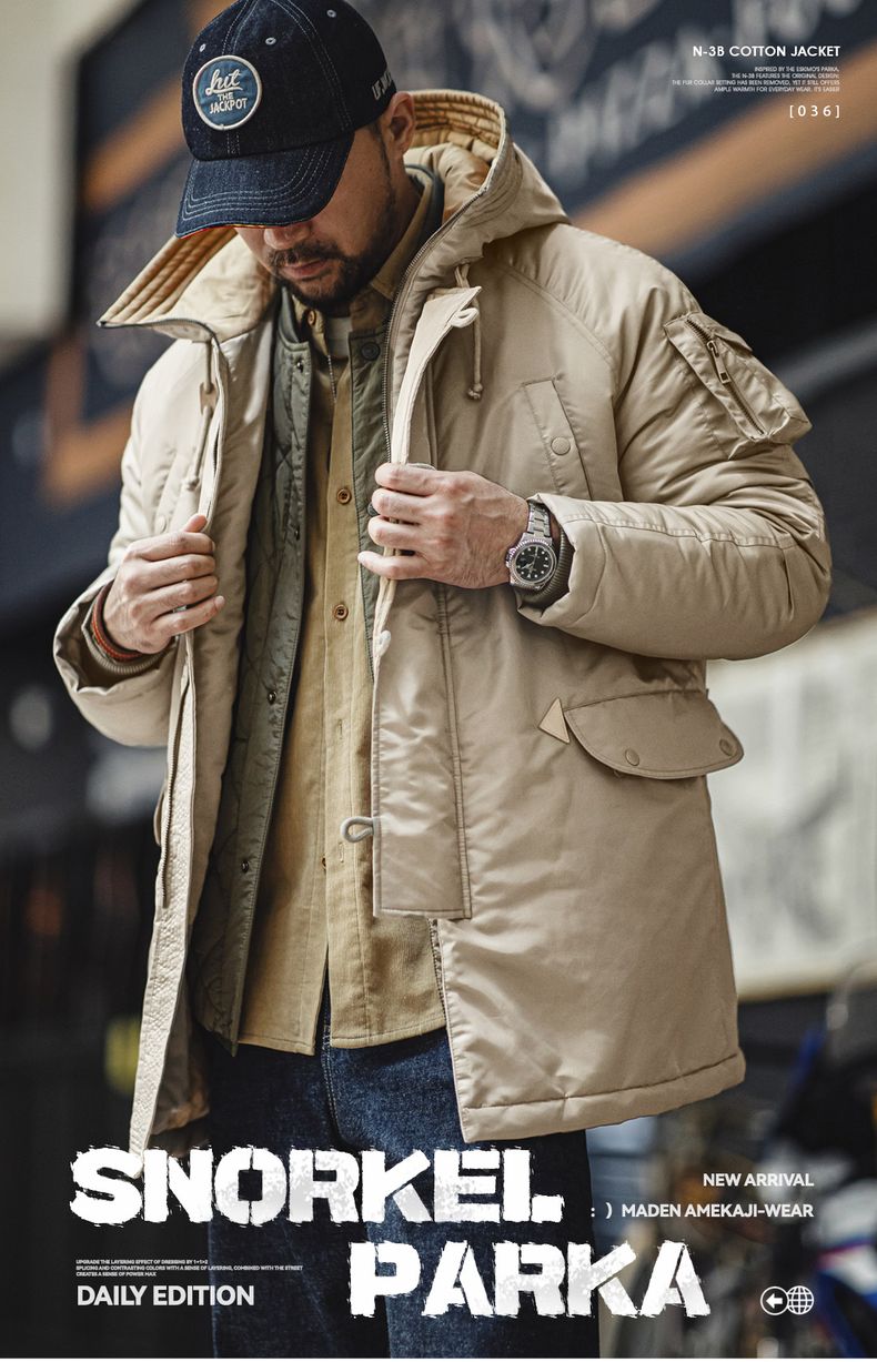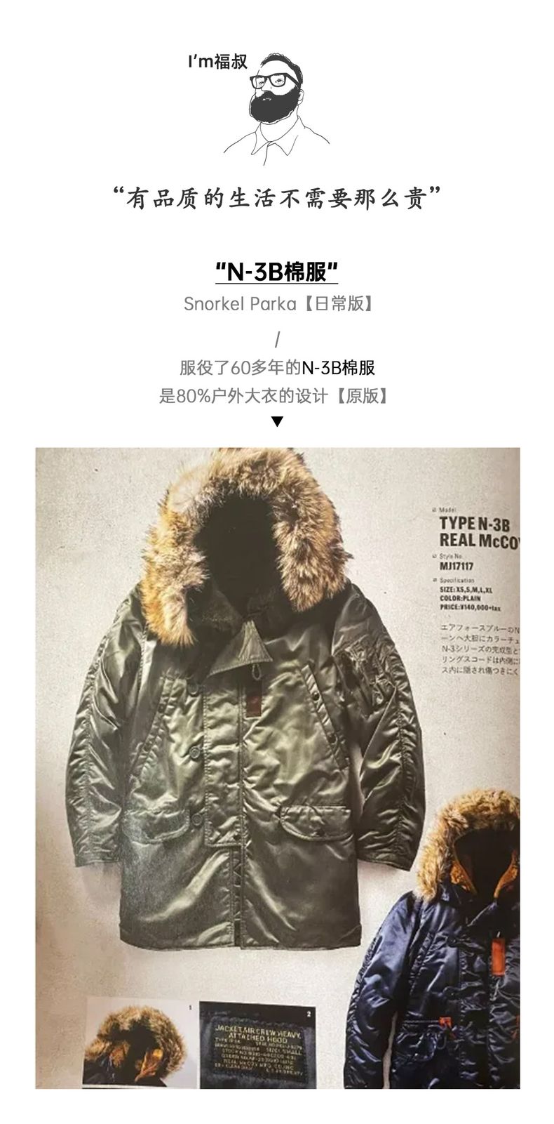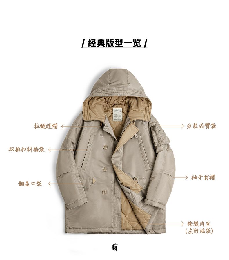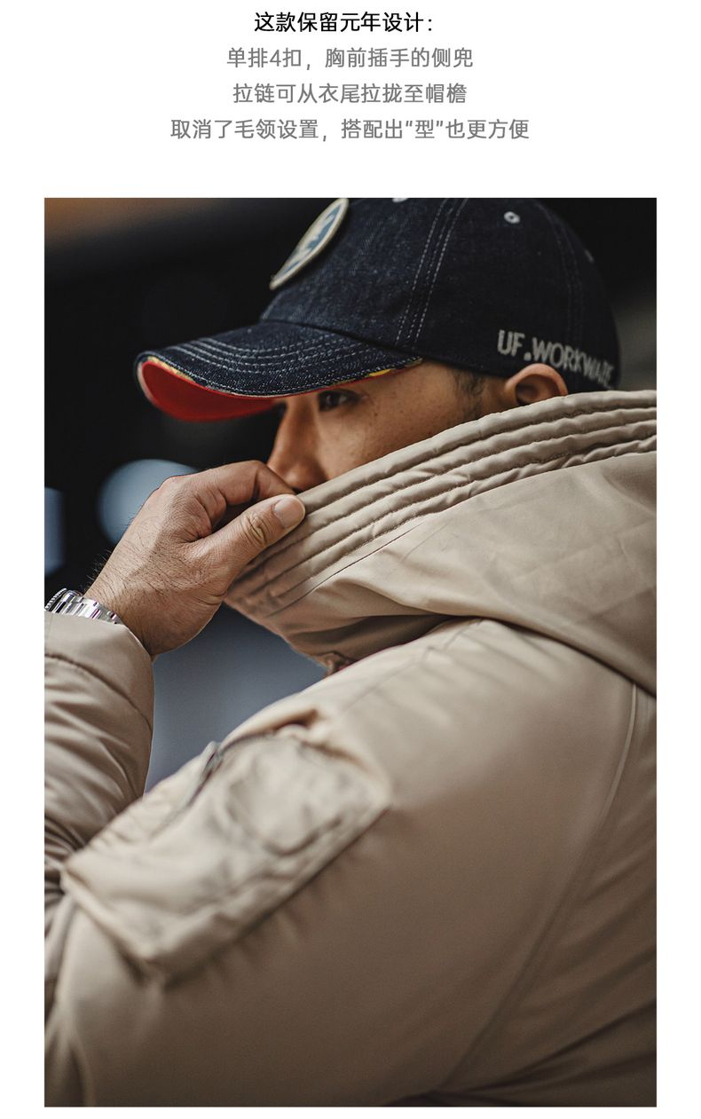 工装优选 美式N3B飞行员夹克棉服军事风加厚中长款连帽外套男秋冬