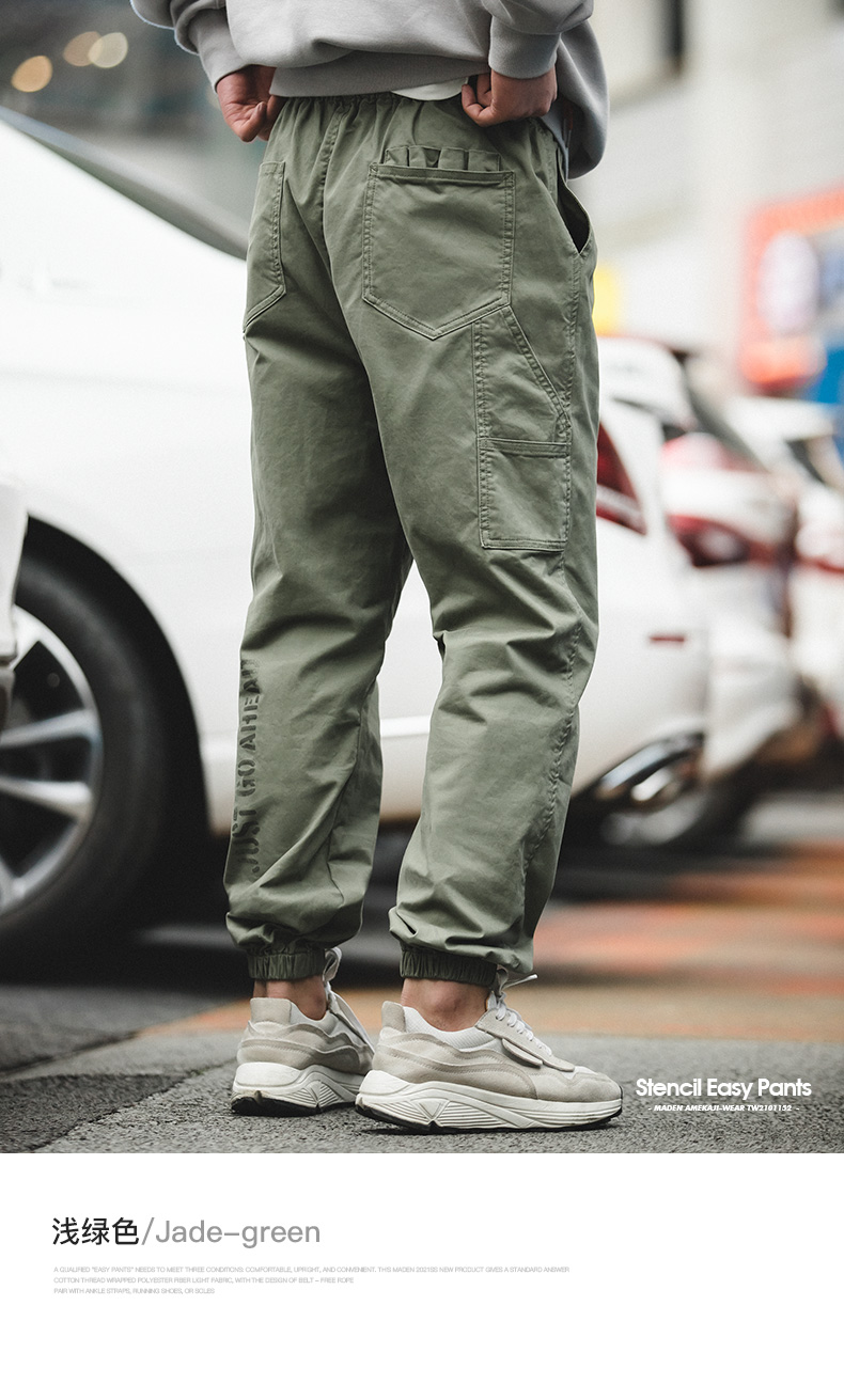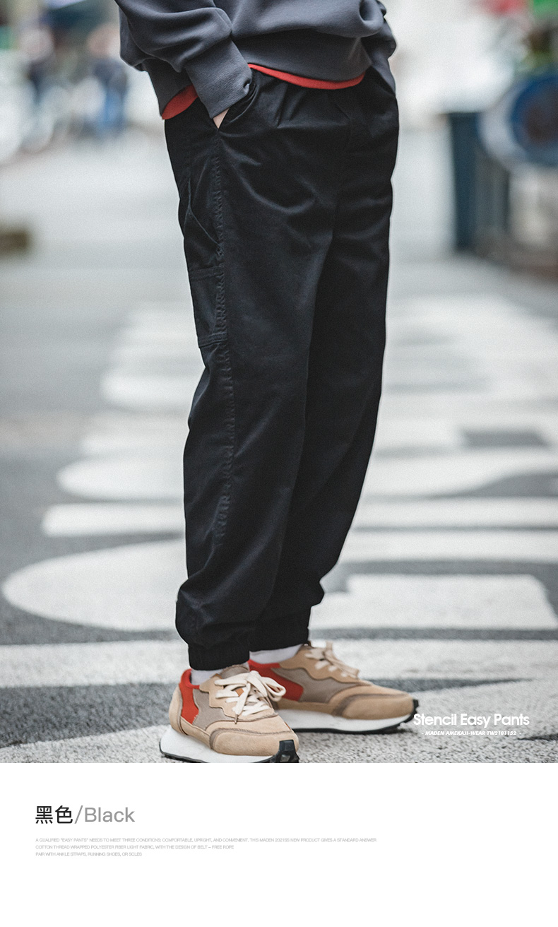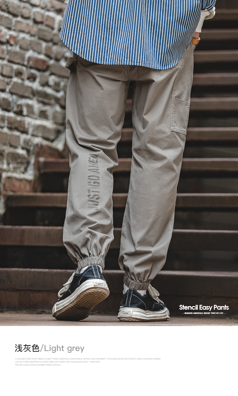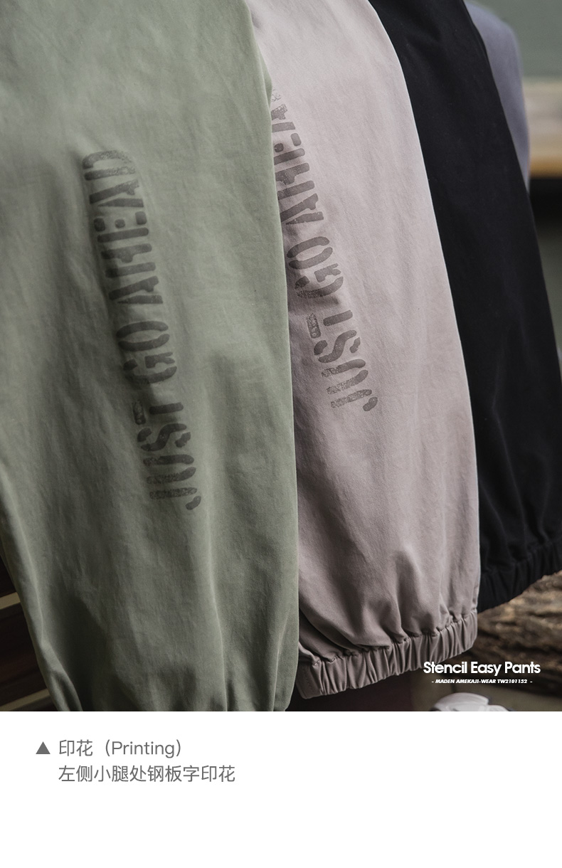 工装优选 美式休闲印花中腰黑色工装裤抽绳松紧腰微弹束脚裤男潮