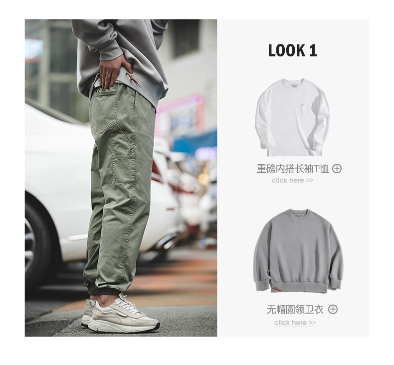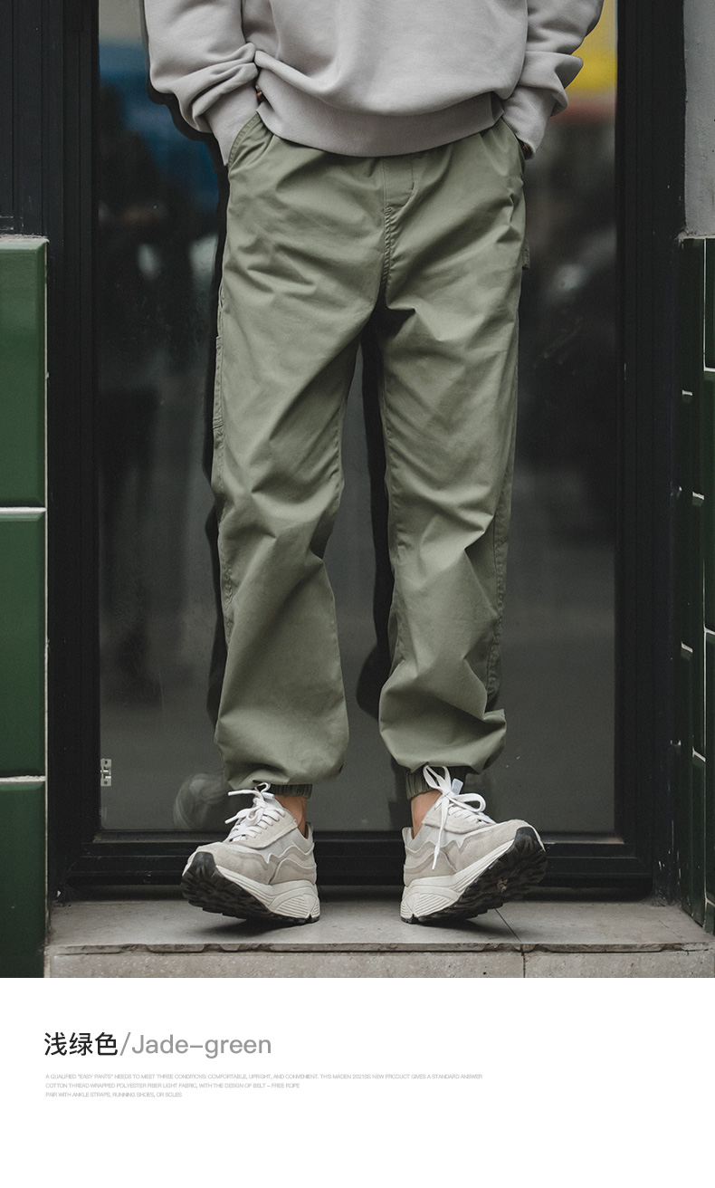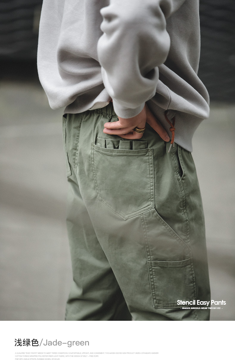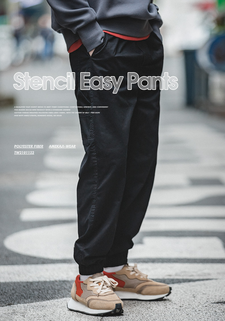 工装优选 美式休闲印花中腰黑色工装裤抽绳松紧腰微弹束脚裤男潮
