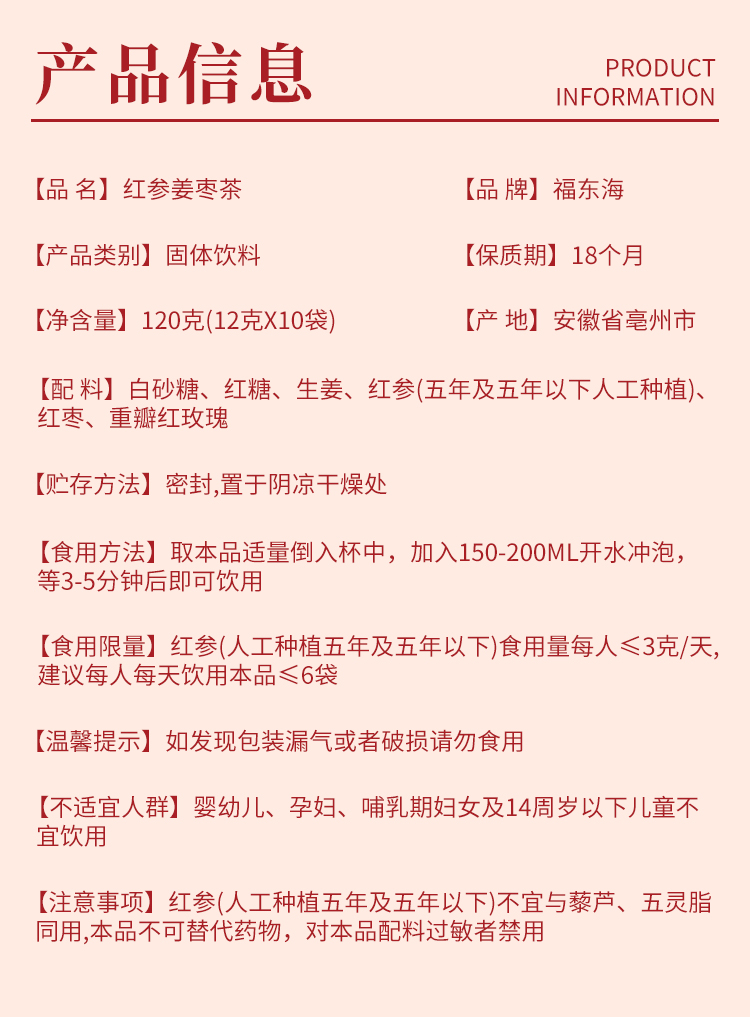 福东海 红参姜枣茶固体饮料120克 独立包装滋补泡水搭红枣女生养生