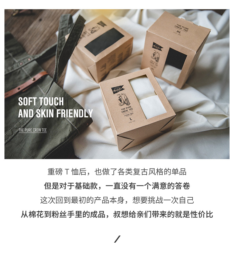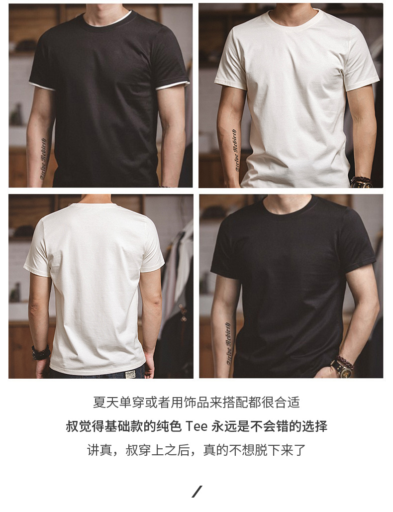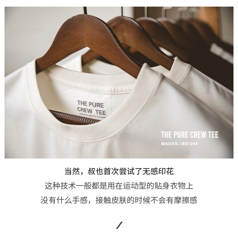 工装优选 美式复古重磅纯棉米白色t恤正肩半袖短袖打底衫男士夏季