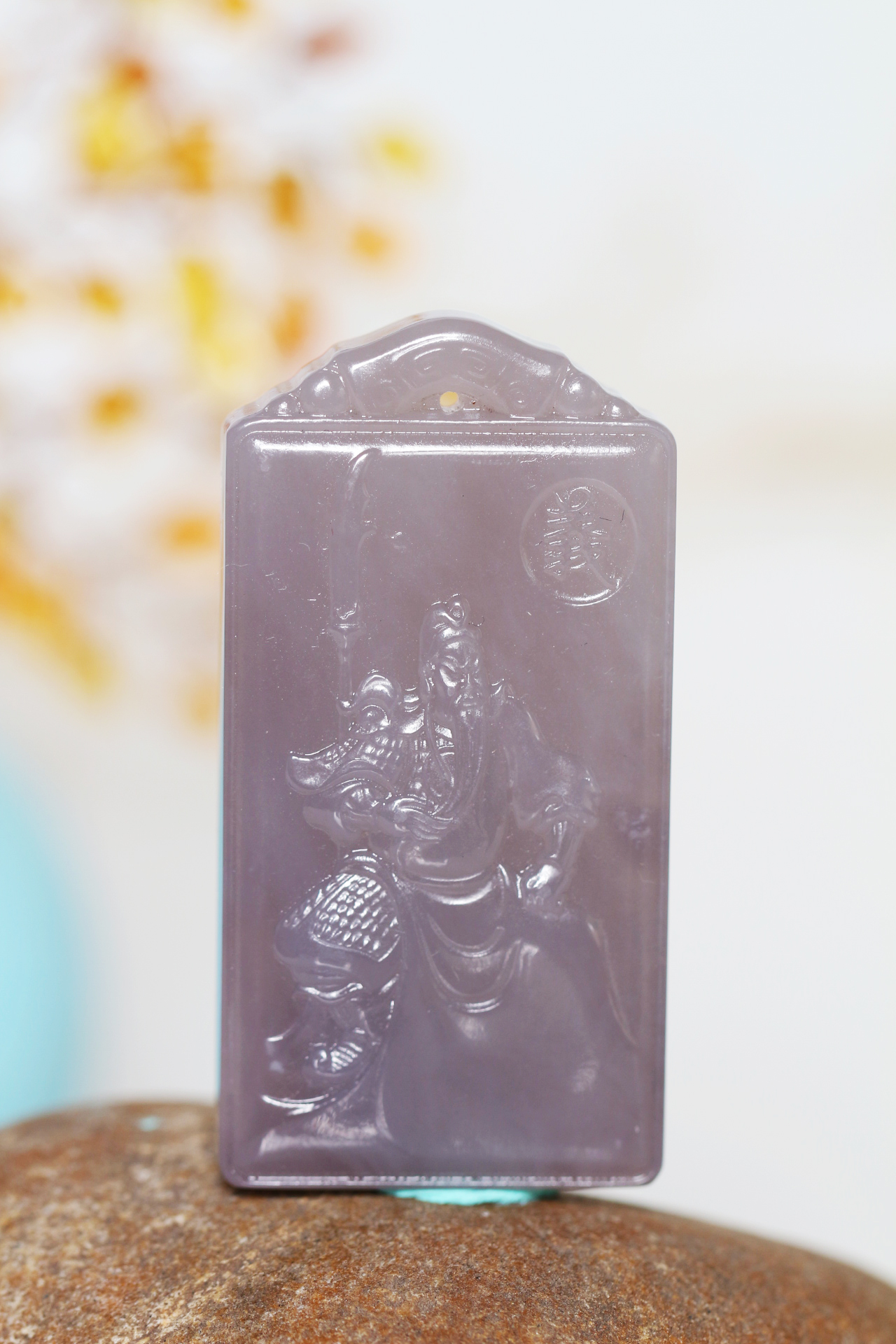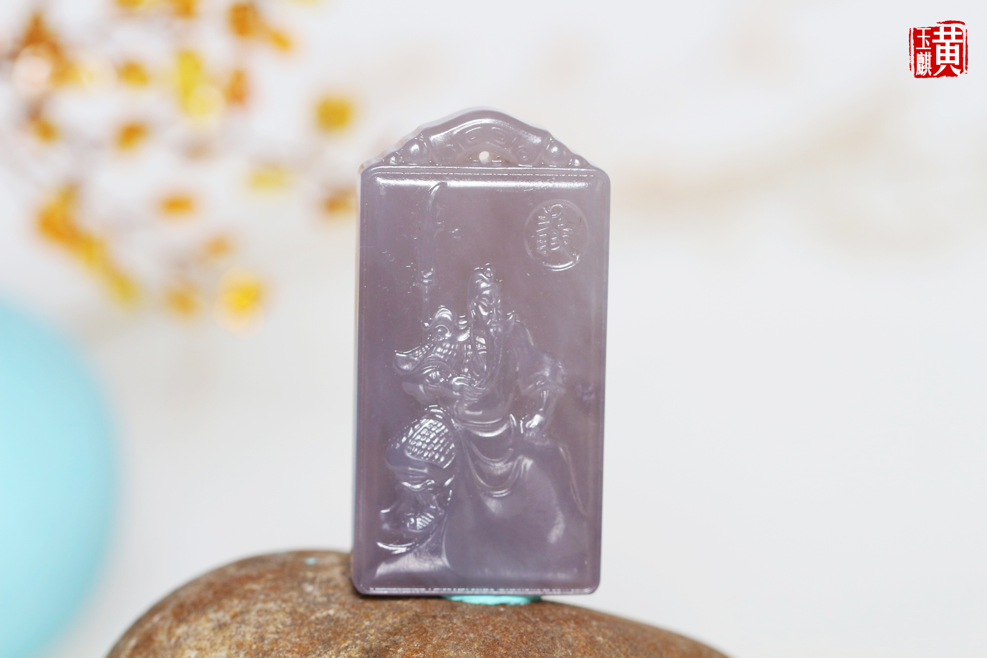 和田烟紫玉【武财神关公】吊坠 配精美编织挂绳
