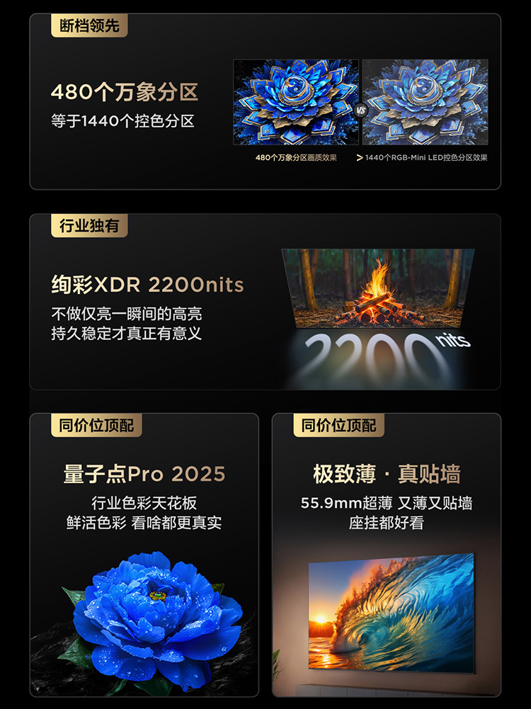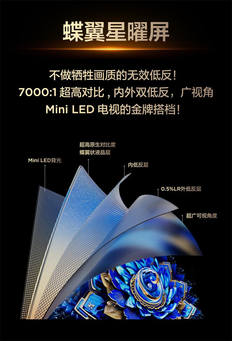 【新品上市】TCL电视 55T7L Ultra 55英寸 QD-Mini LED 蝶翼星曜屏 万象分区 绚彩XDR 2200nits 超薄电视