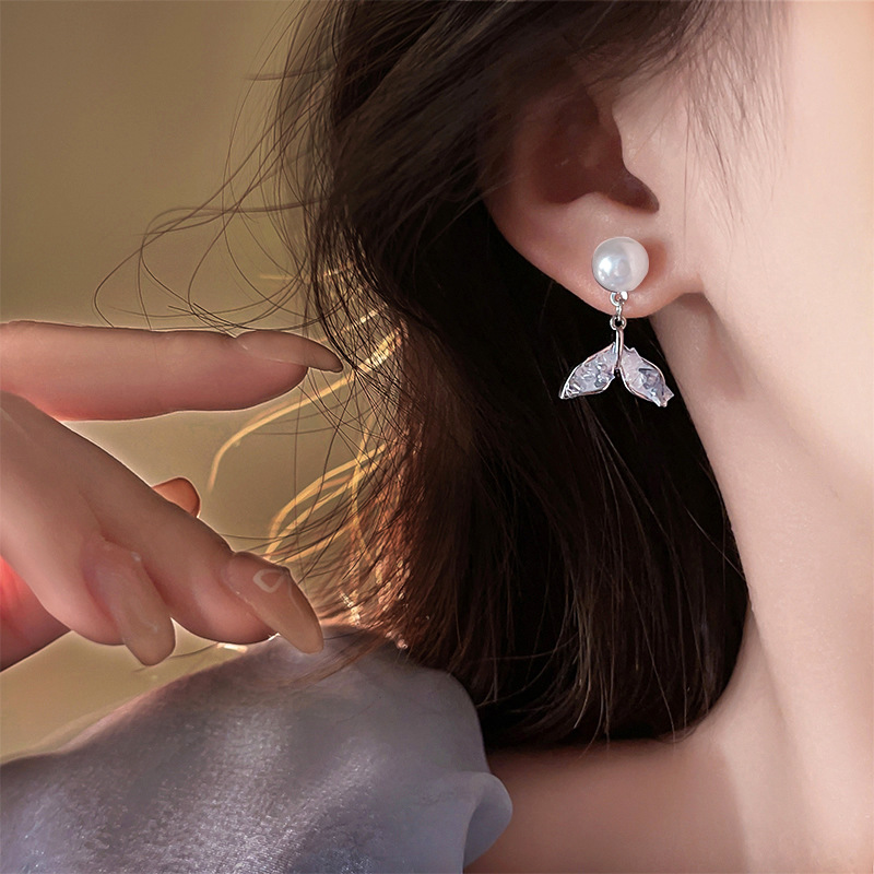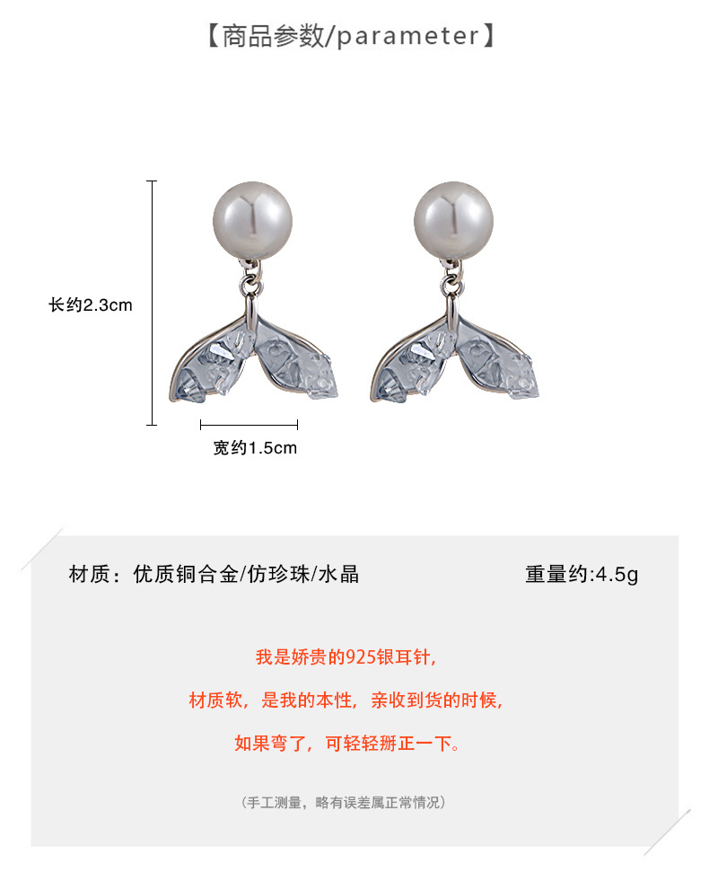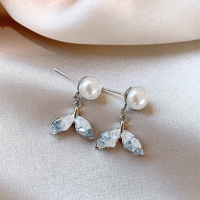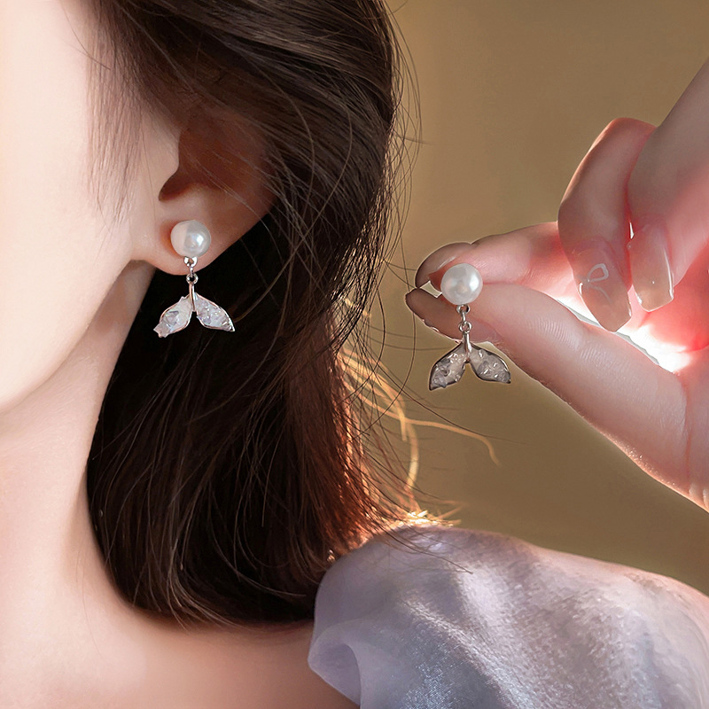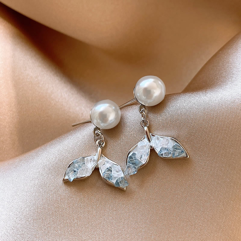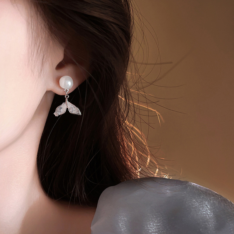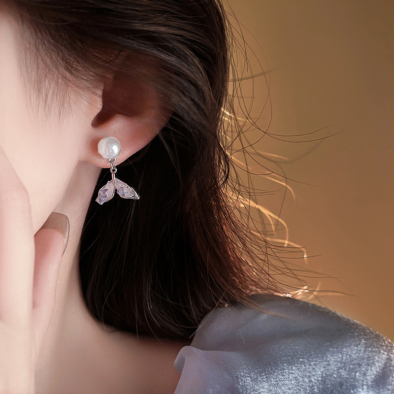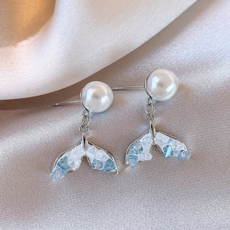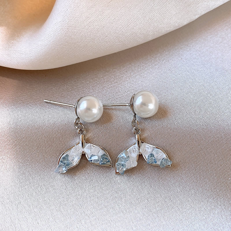 【福利款~】s925银针蓝色渐变鱼尾珍珠耳钉小众轻奢高级感耳环气质百搭耳饰女