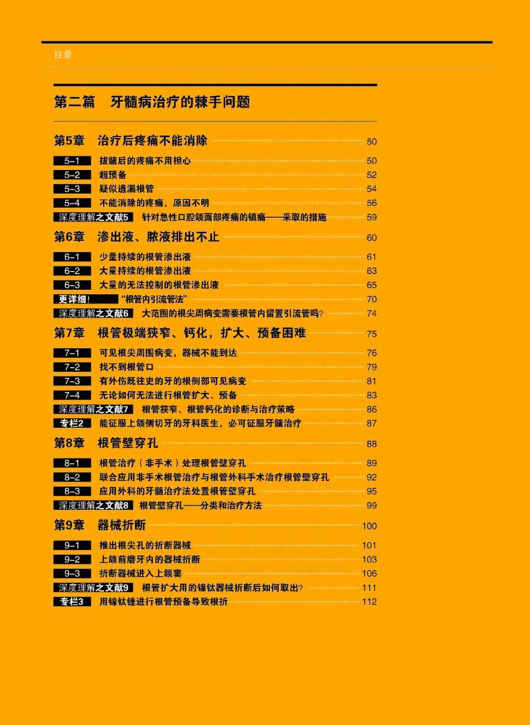 “术后疼痛”“渗出、溢脓不止”“根管极度狭窄、矿化,难以扩充预备”“预备过程中出现穿孔”“根管工具折断”“根充困难”等这些临床一定会经历的问题,为何会发生?应该如何应对?本书对于大多数病例的问题提出具体的解决思路,为帮助大家克服临床根管及根管再治疗的疑难问题,针对具体病例提出“指针”和“铁则”。