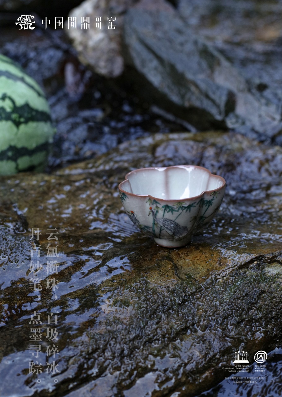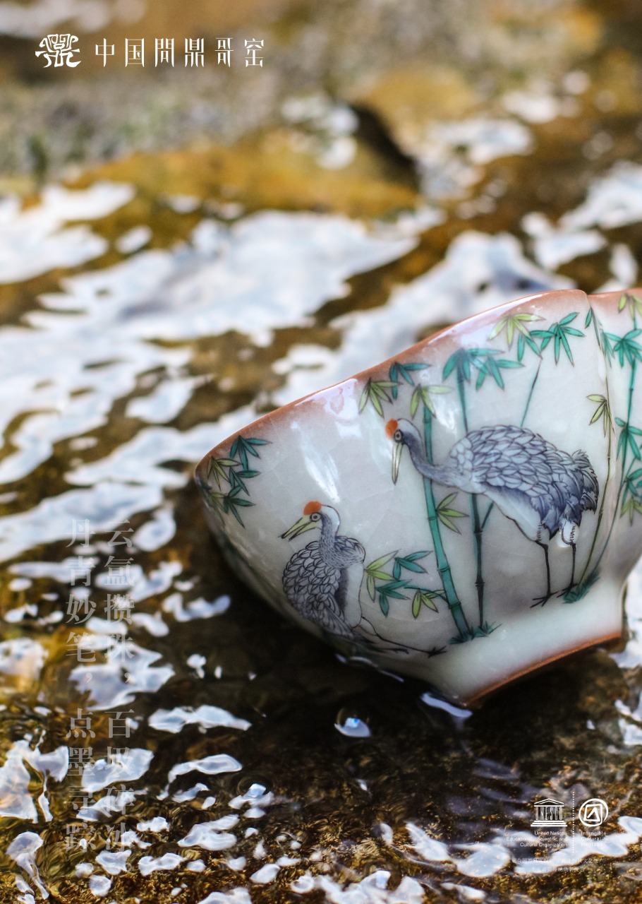 问鼎哥窑致巧款凌霜杯(竹林鹤立)