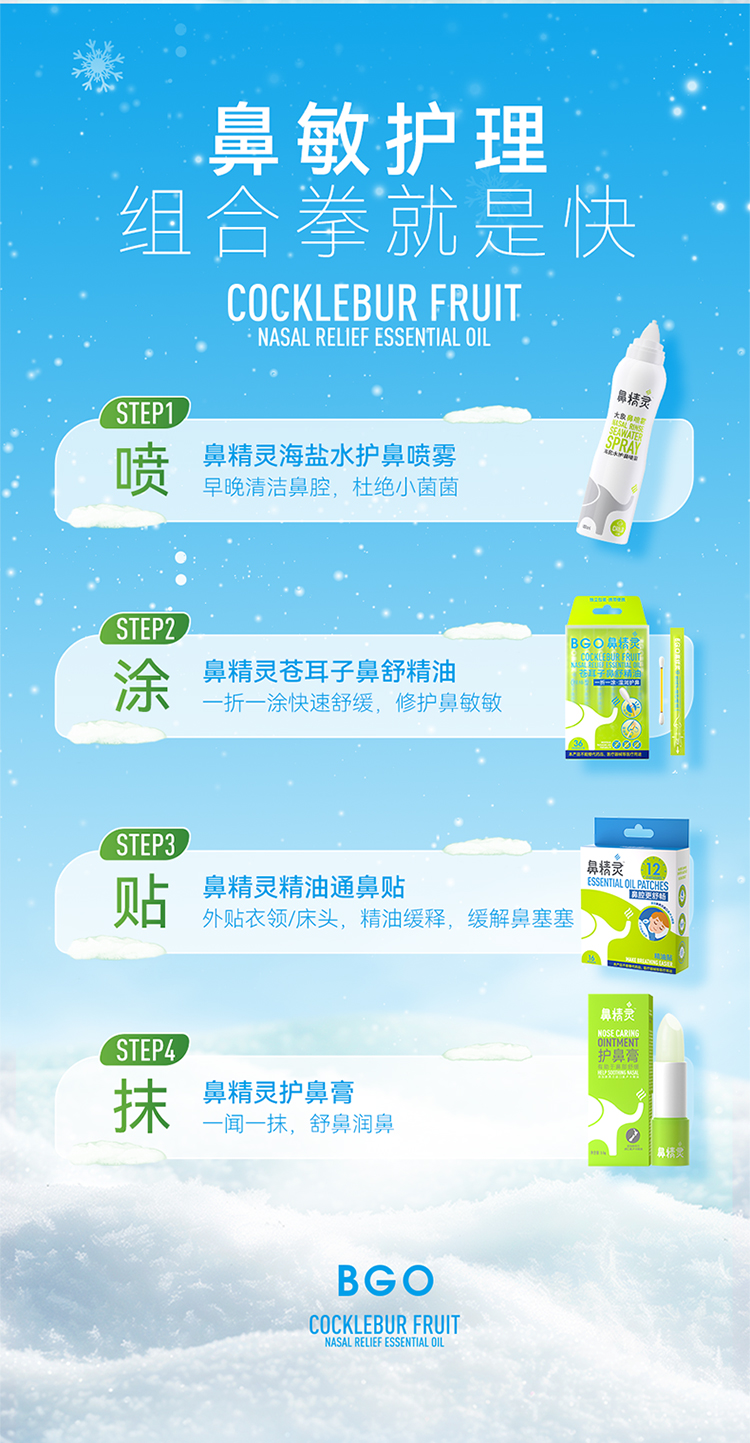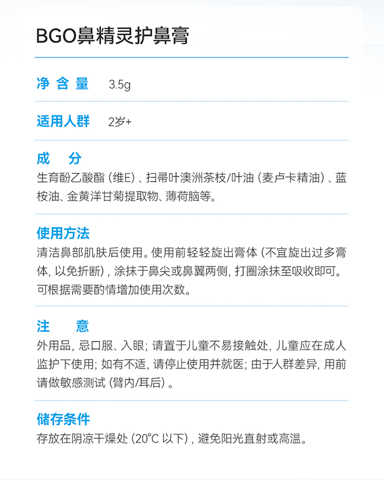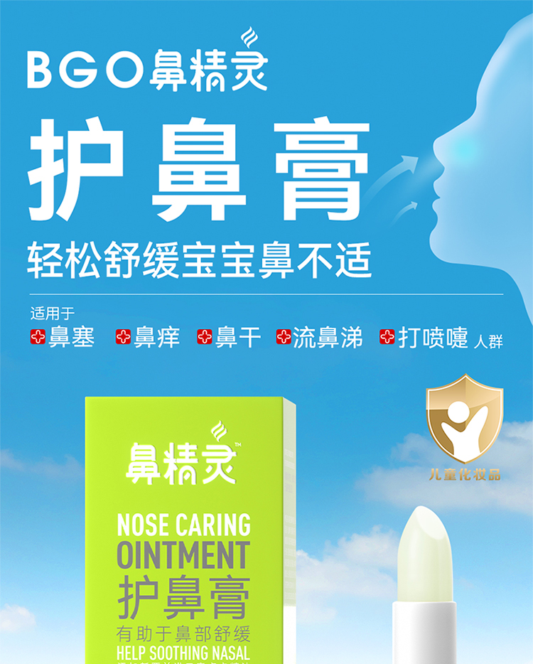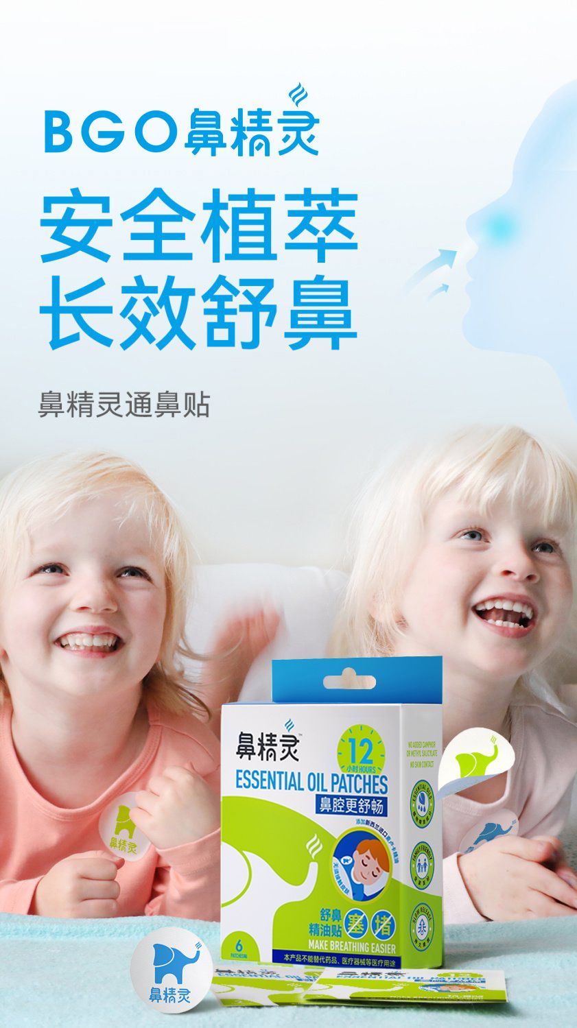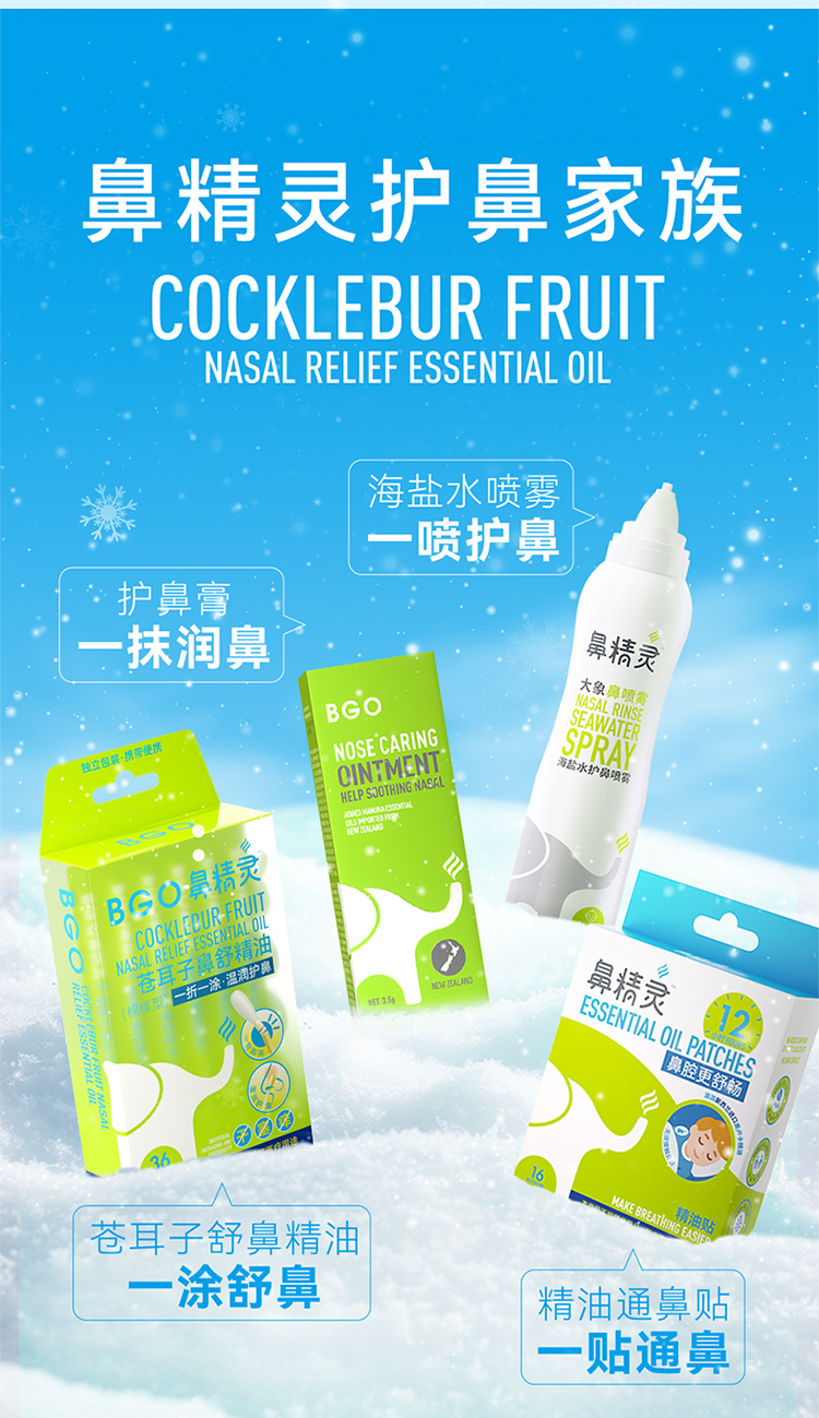 新西兰 鼻精灵(BGO)婴儿通鼻贴通鼻膏护鼻喷雾鼻舒精油棒 鼻塞鼻痒鼻腔护理