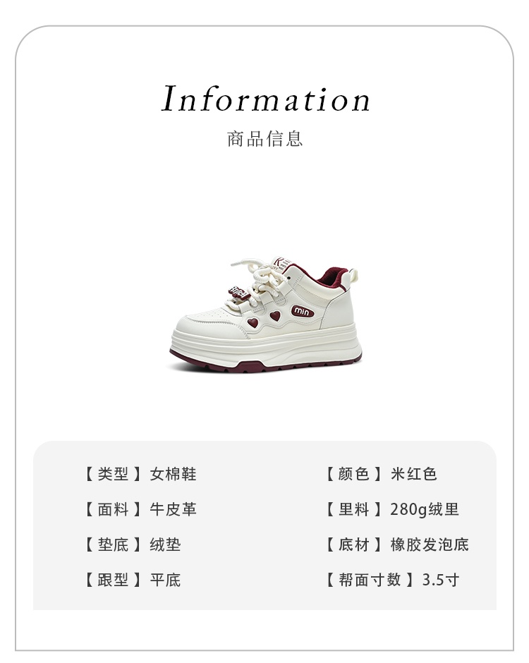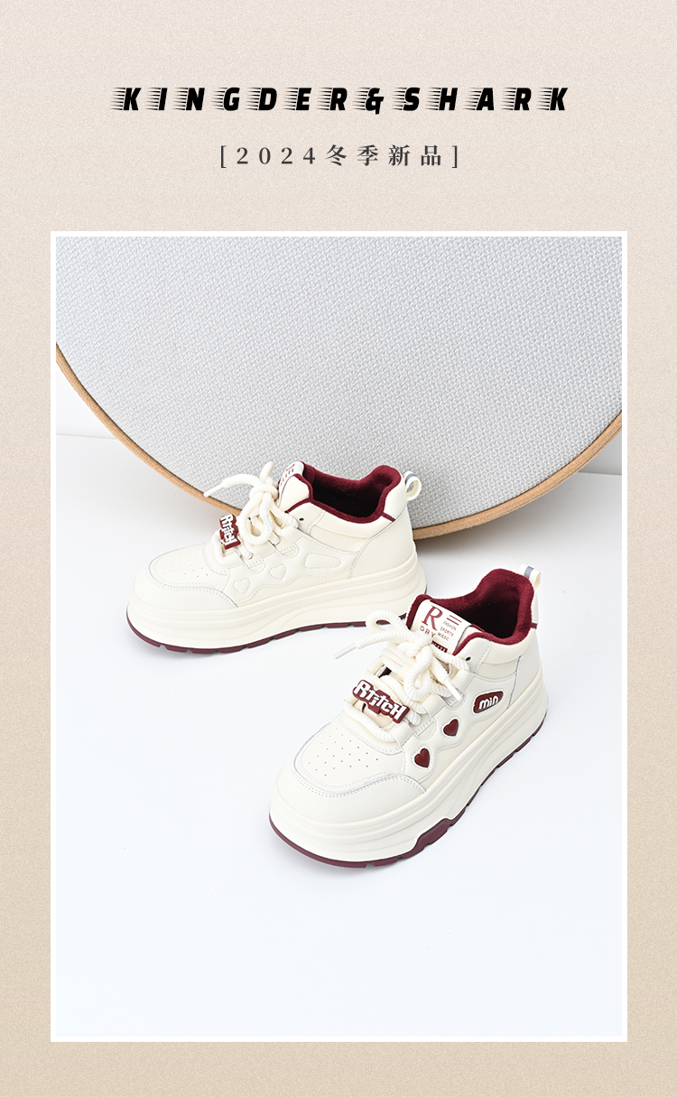经典鲨女鞋2024年冬季新款韩版时尚安可拉红加绒小白鞋休闲鞋KW326-D58201