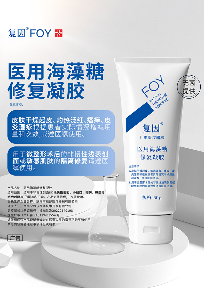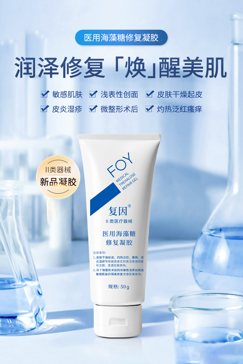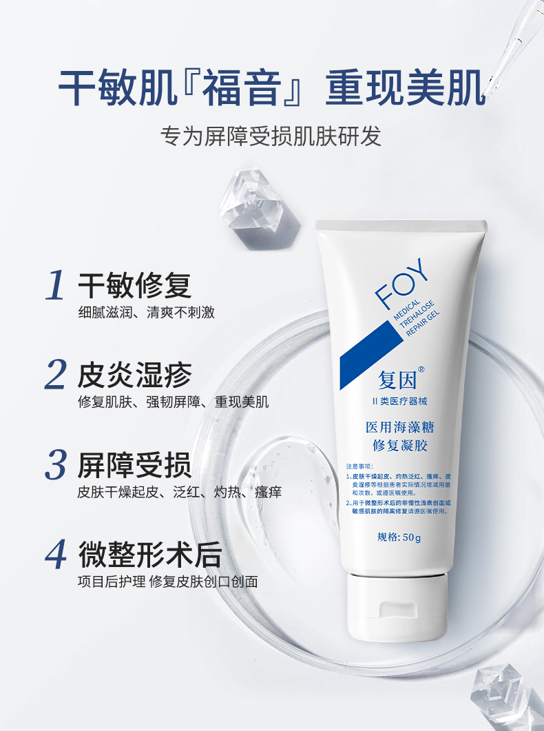 复因医用海藻糖修复凝胶50g/支+送5片复因基础面膜