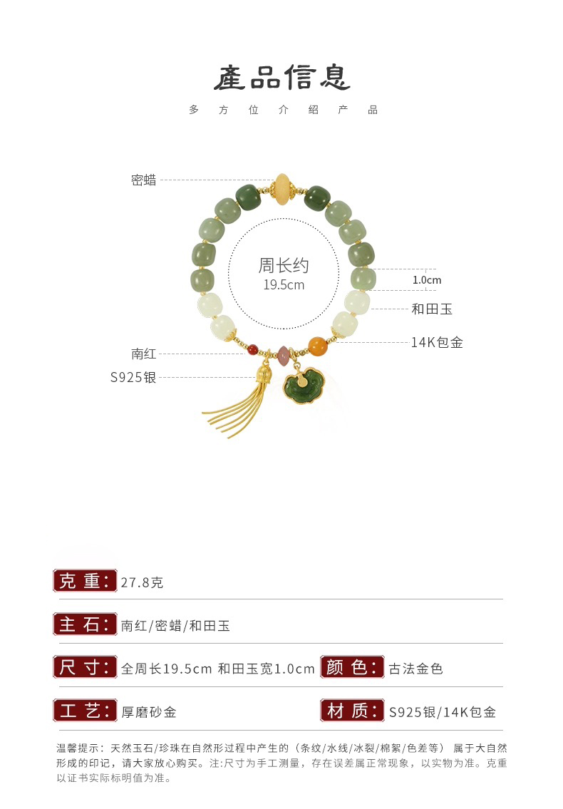 【宫里手串】和田玉事事如意手串