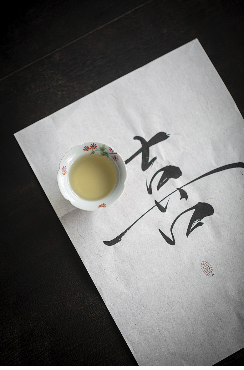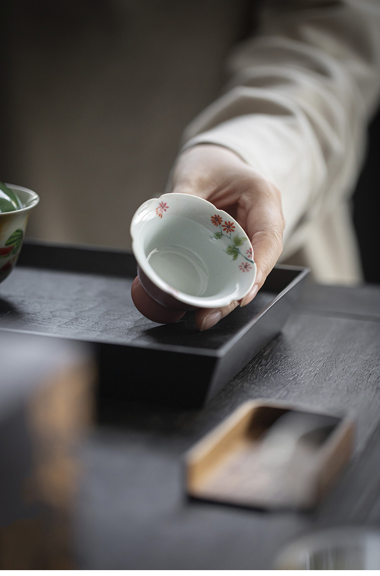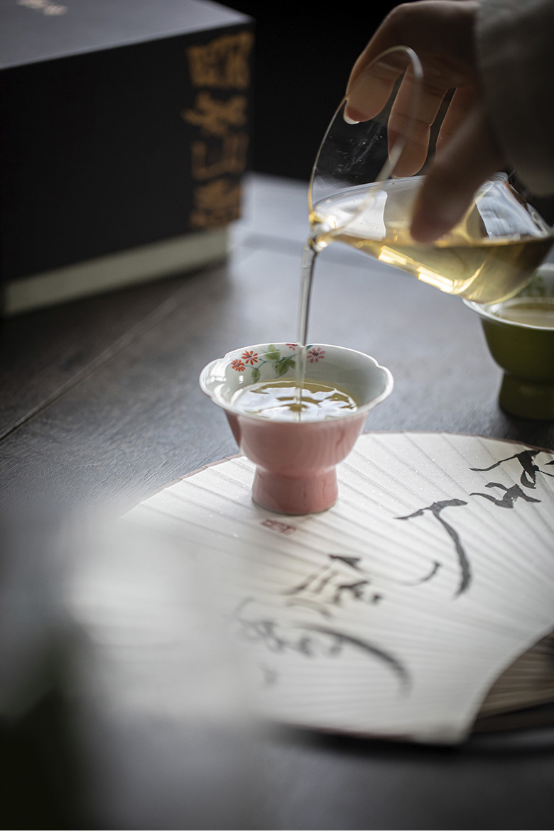 永利汇中式凤仙粉高足花口杯手绘花繁文人器女士喝茶单杯品茗杯