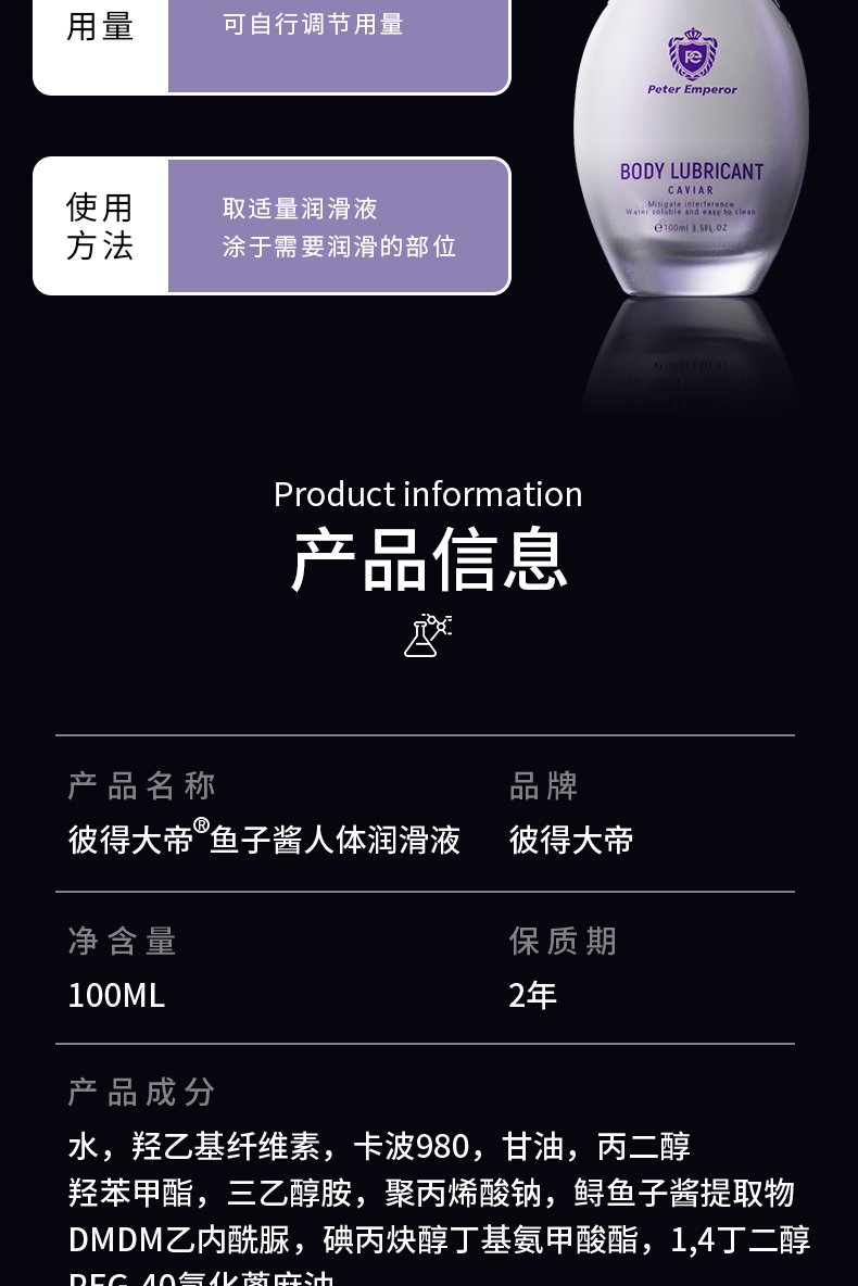 彼得大帝鱼子酱润滑液100m润滑油人体润滑剂水溶性成人情趣性用品
