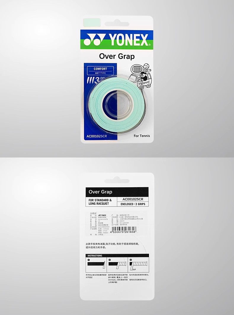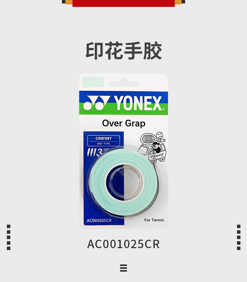 YONEX尤尼克斯羽毛球拍手胶AC001015CR/AC001025CR吸汗带防滑手胶3条装