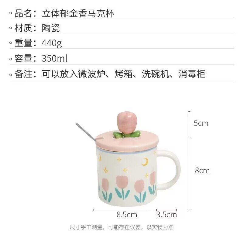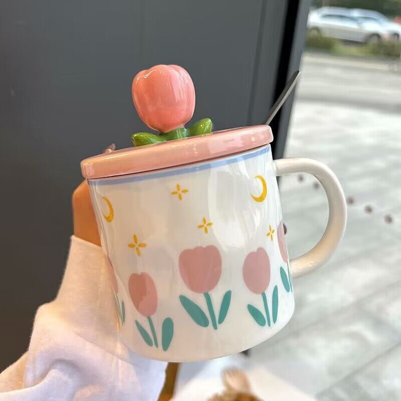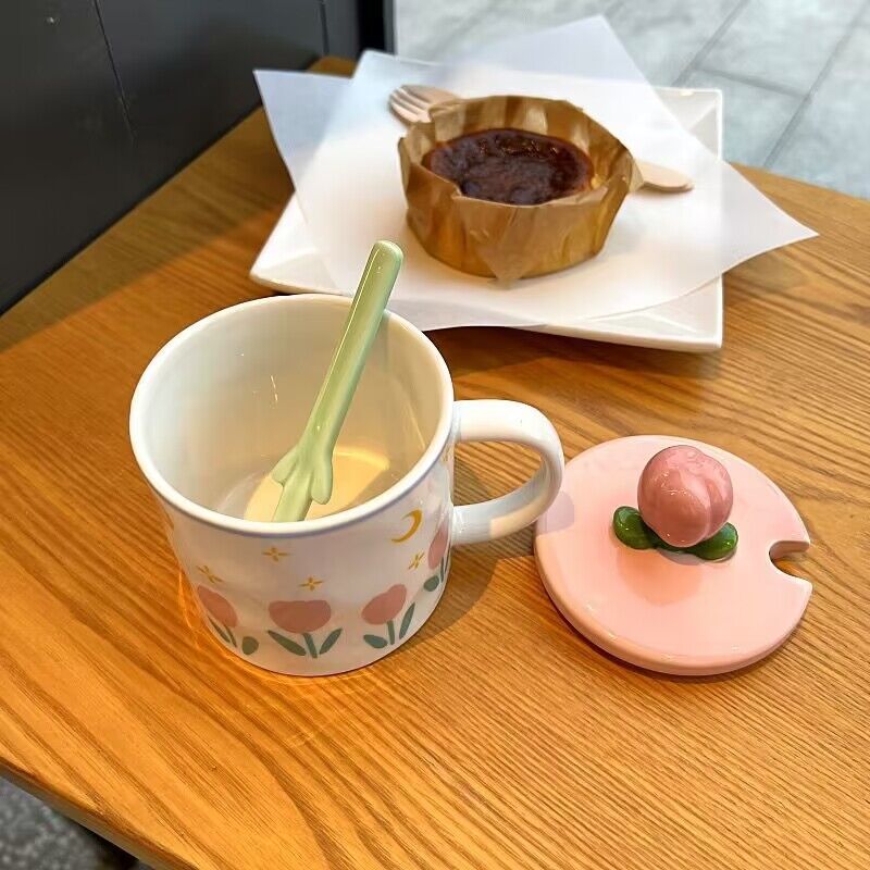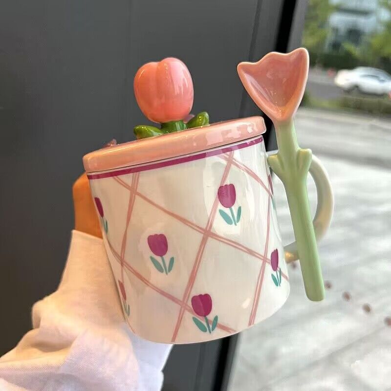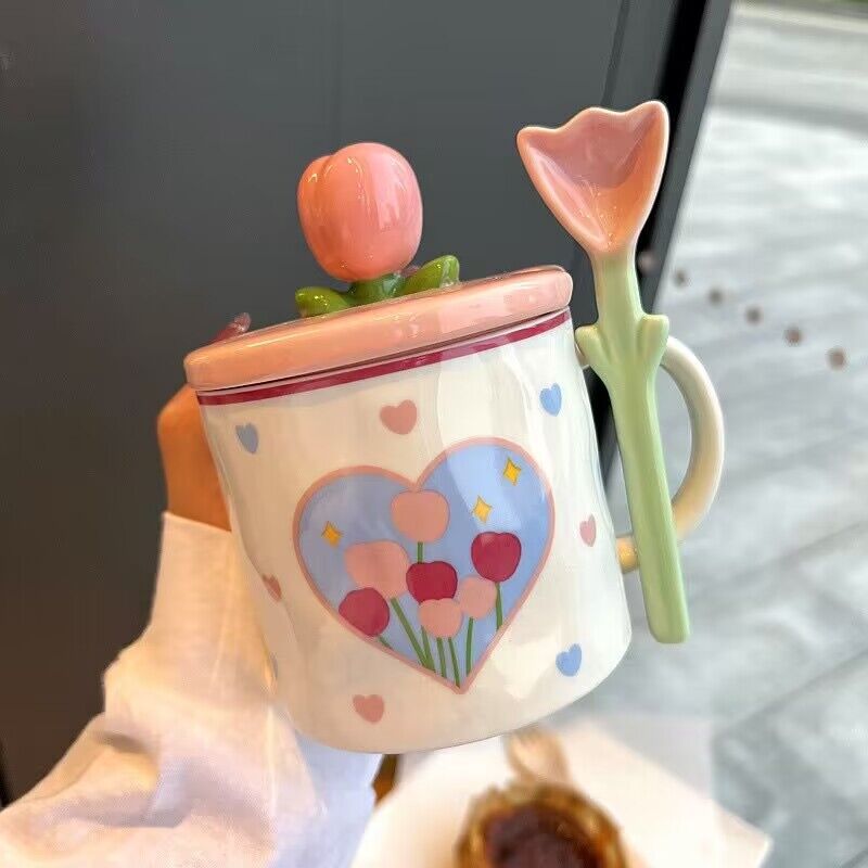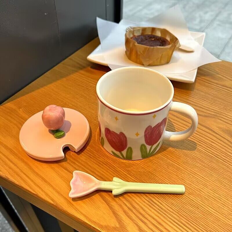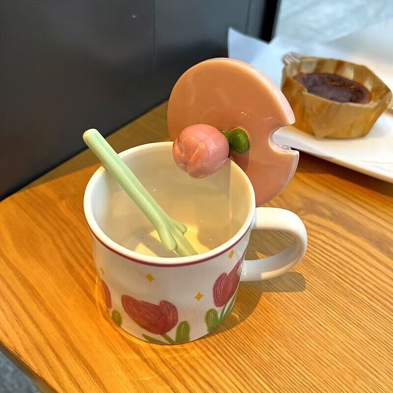 少女心郁金香杯子有盖办公室ins风马克杯高颜值陶瓷水杯生日礼物