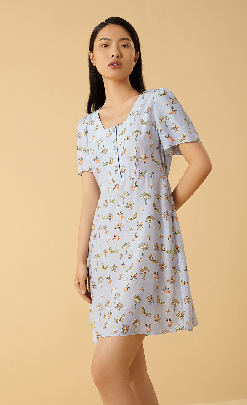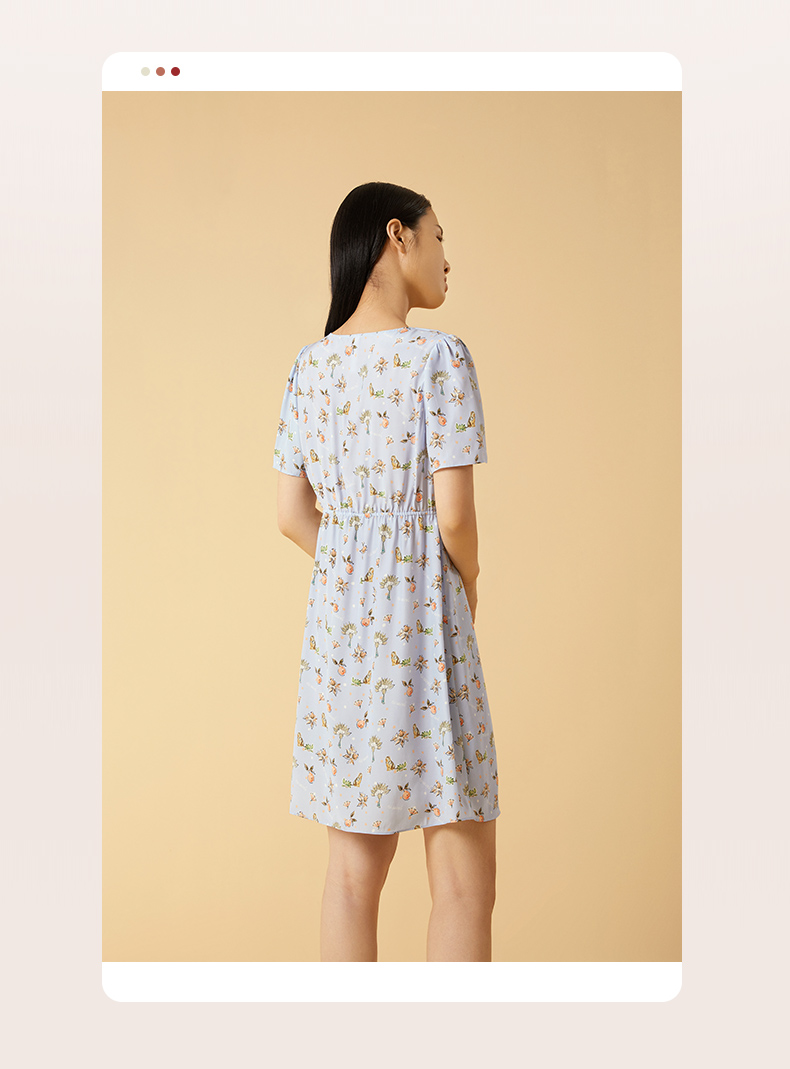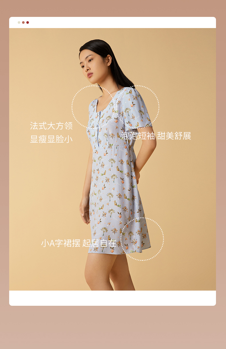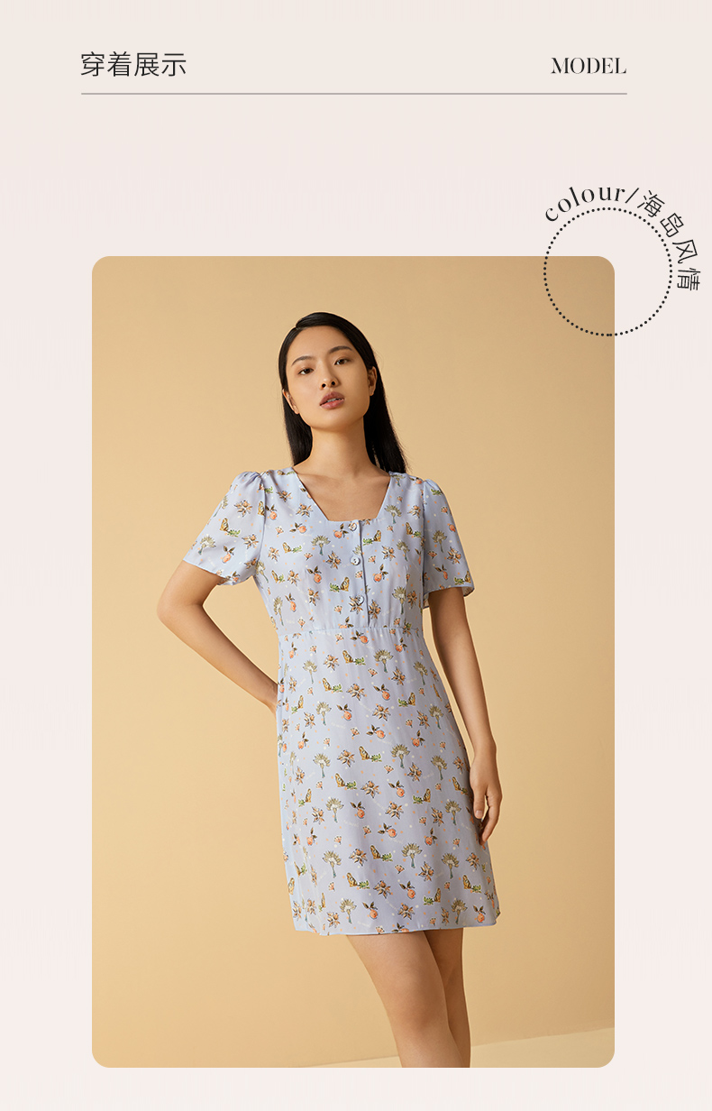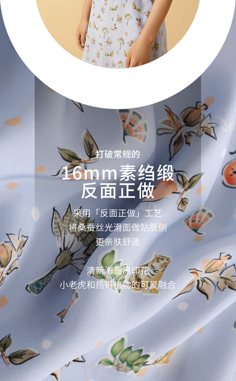 金三塔100%桑蚕丝印花复古方领女士真丝睡裙时尚可爱家居服新品 YSFCB317