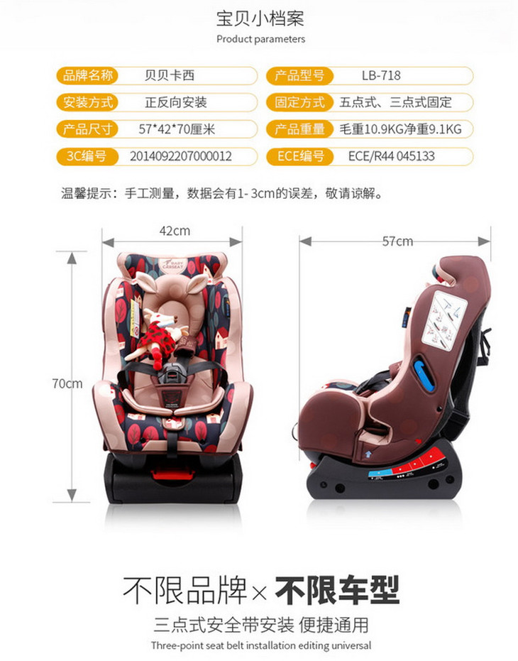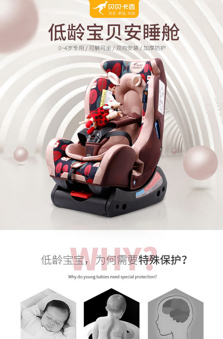 贝贝卡西汽车儿童安全座椅 0-6岁宝宝婴儿新生儿车载坐椅坐躺可调