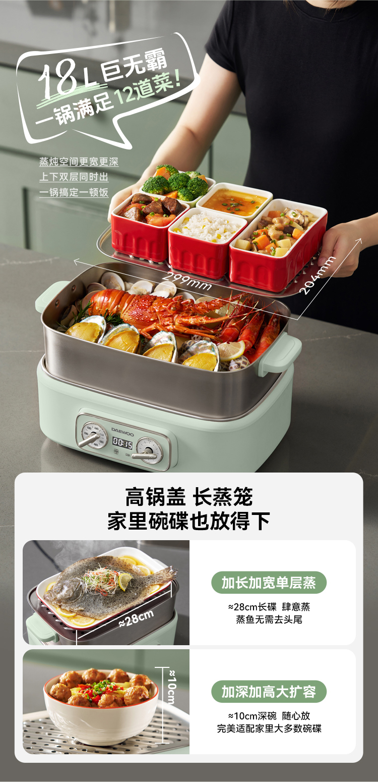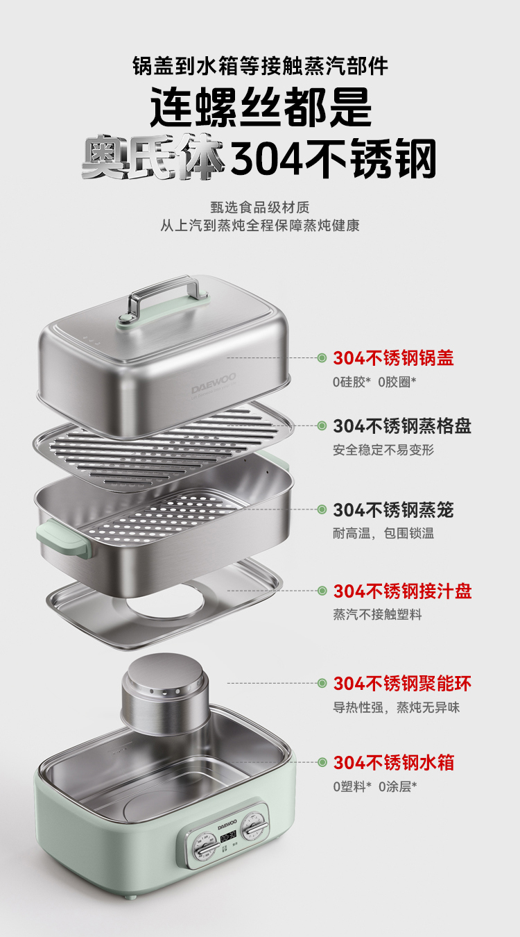 [屁侠推荐.pippa]大宇全不锈钢电蒸锅S27 加厚奥氏体304不锈钢 O涂层 1500W聚能环30S上汽高温锁鲜 蒸包不湿皮12H预约18L大容量 能蒸能涮火锅 礼盒限定款