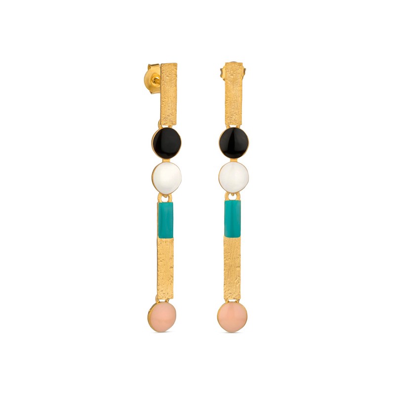 订购6周到|Joidart-SOMNI-蓝色三角 黑金眼形 珐琅 长吊坠 耳环[西班牙设计师]