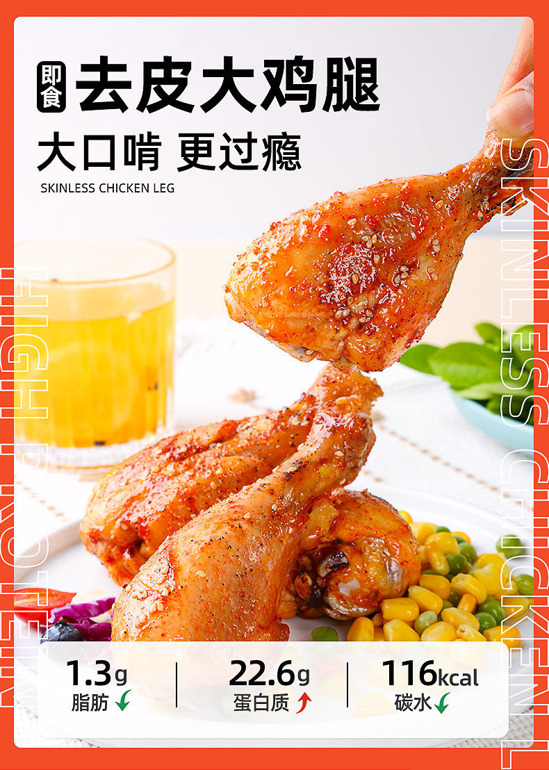 低脂去皮大鸡腿开袋即食健身代餐饱腹高蛋白鸡胸肉批发低脂小零食