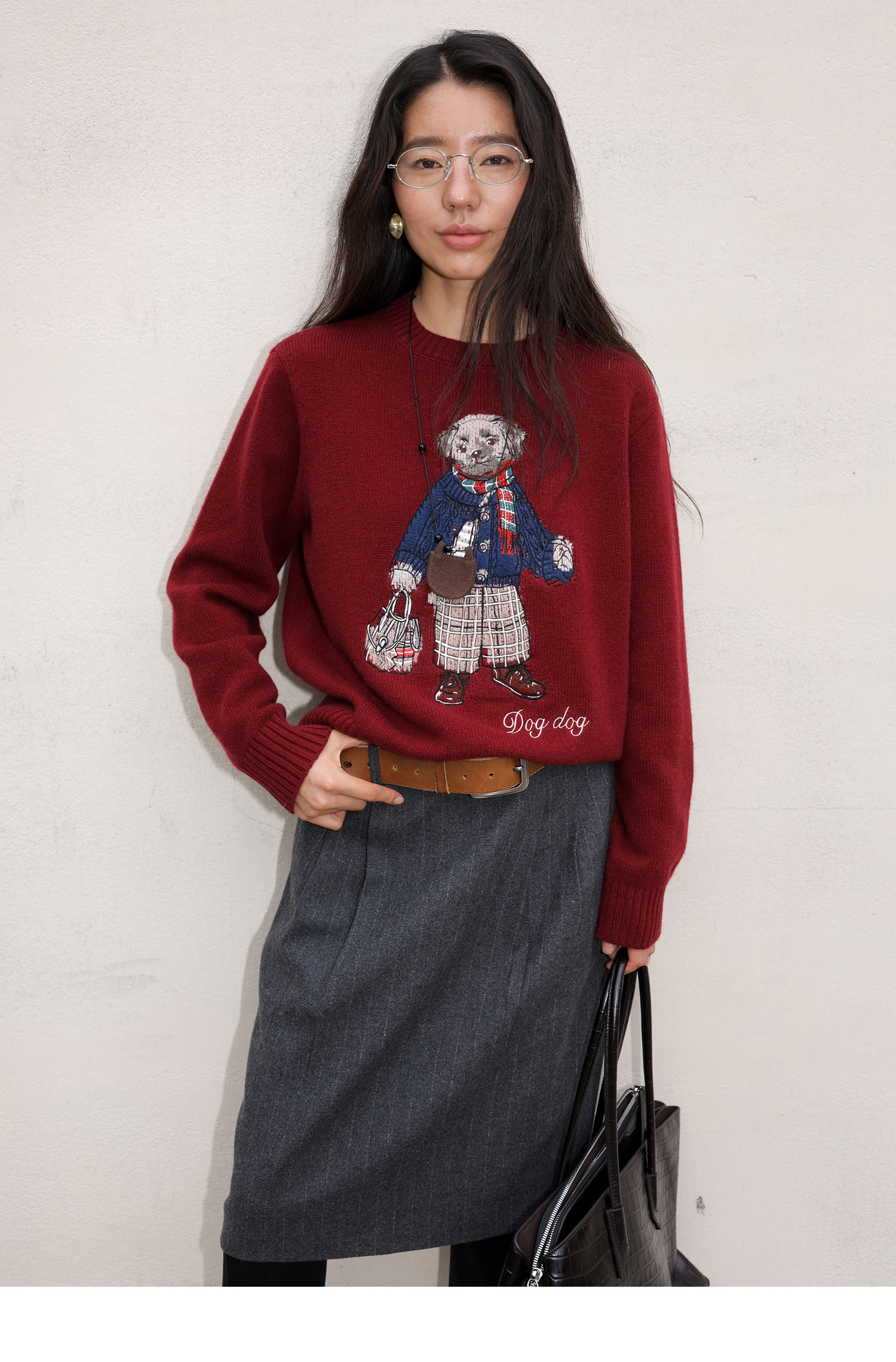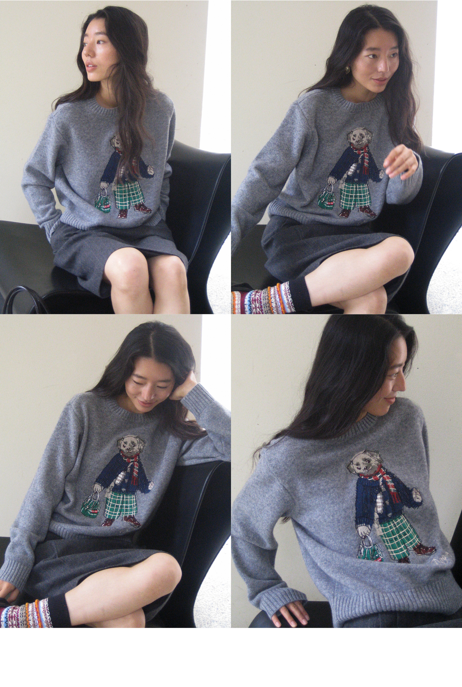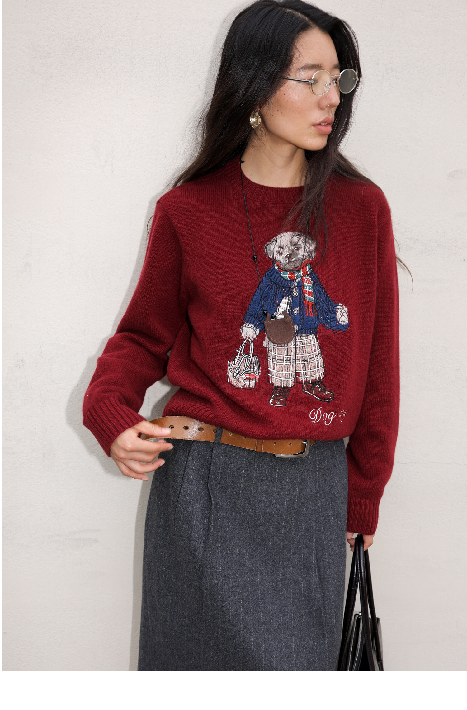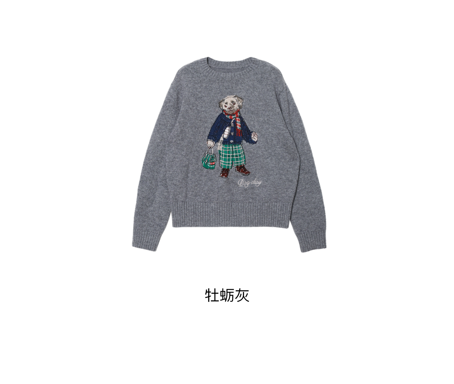 素舶 澳洲美利奴羊毛 学院小狗提花刺绣圆领百搭针织衫毛衣