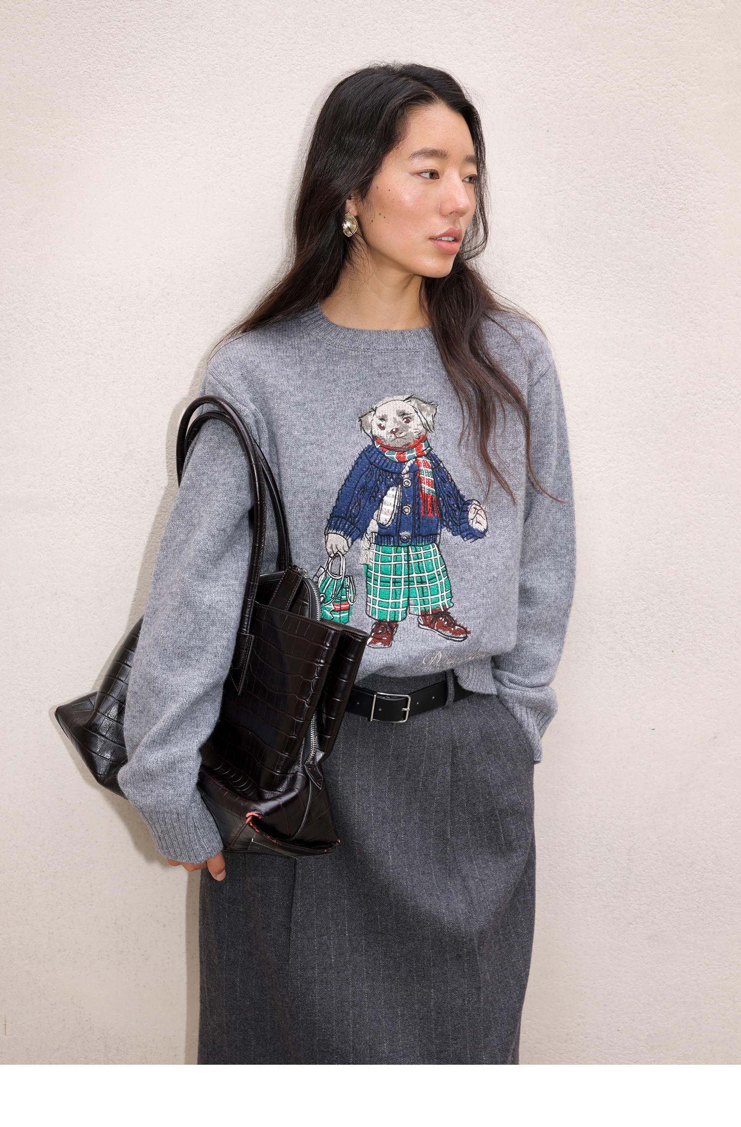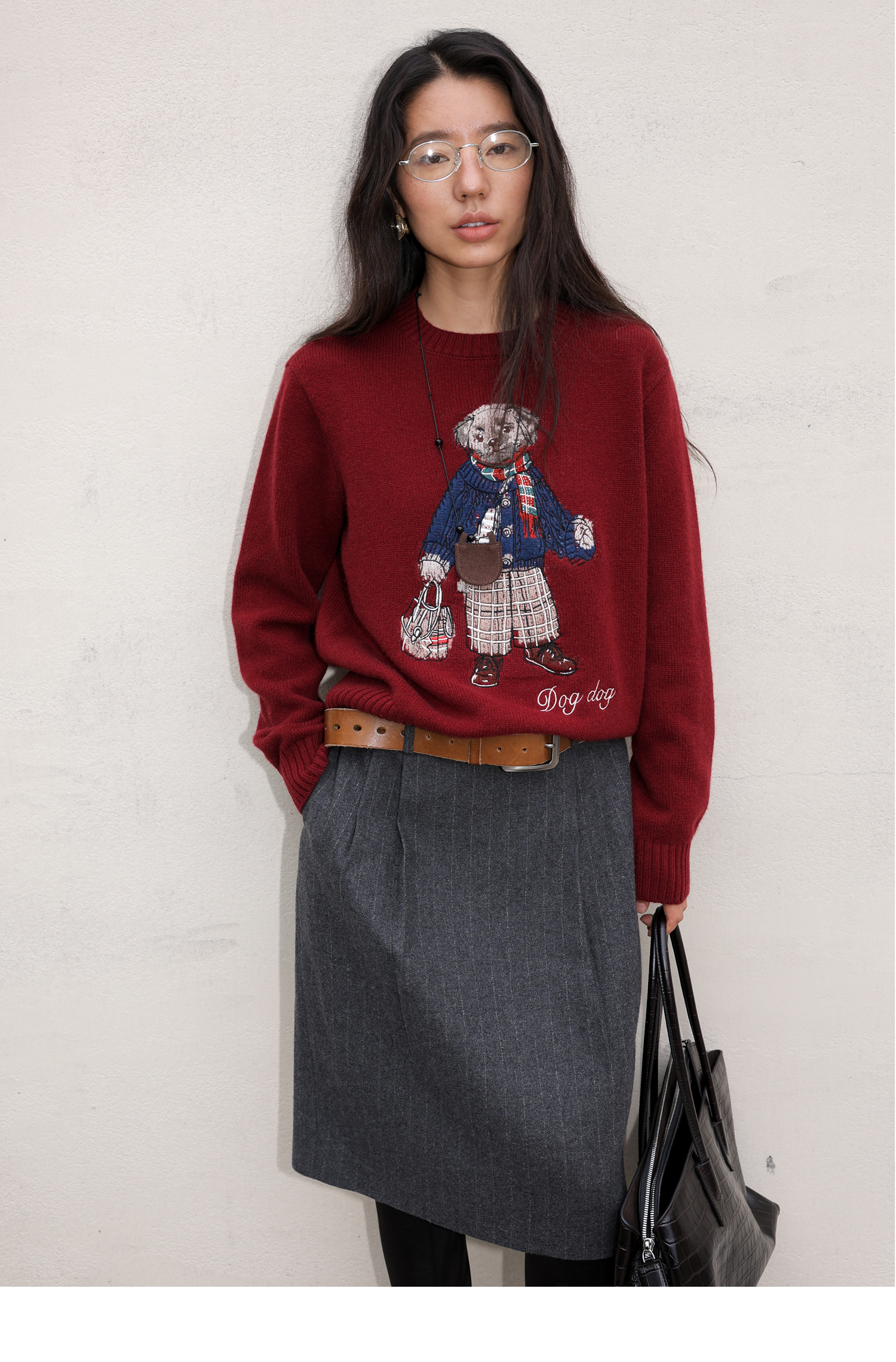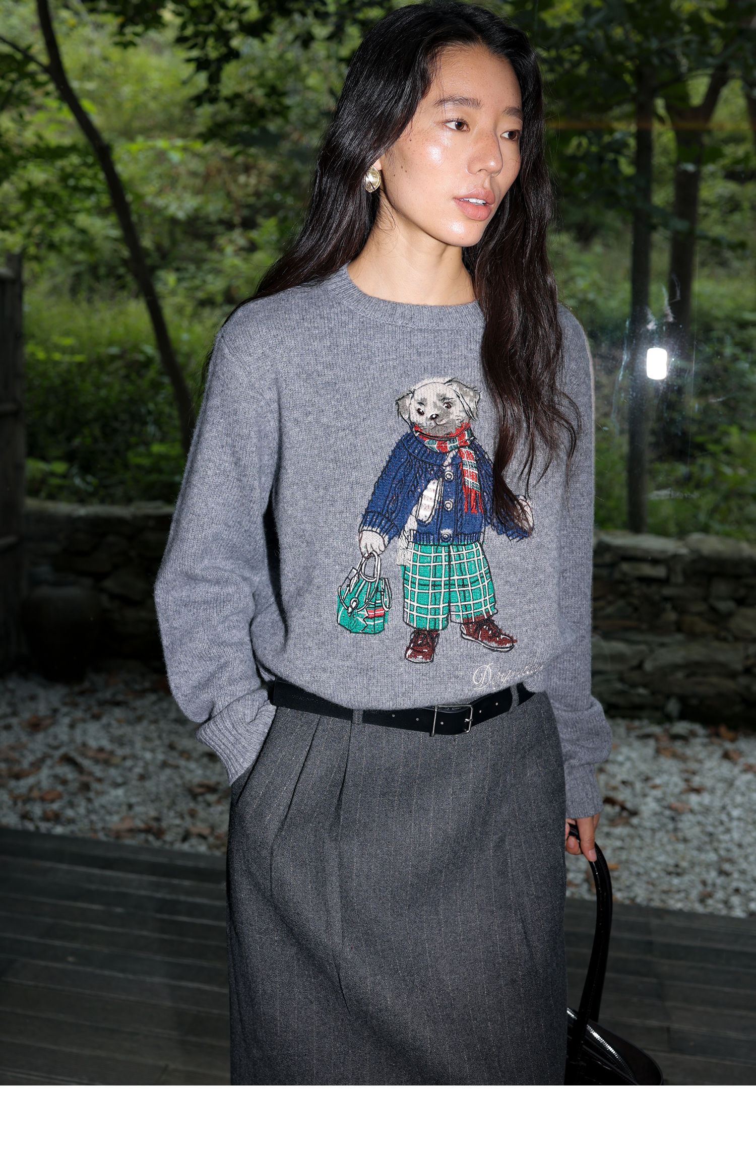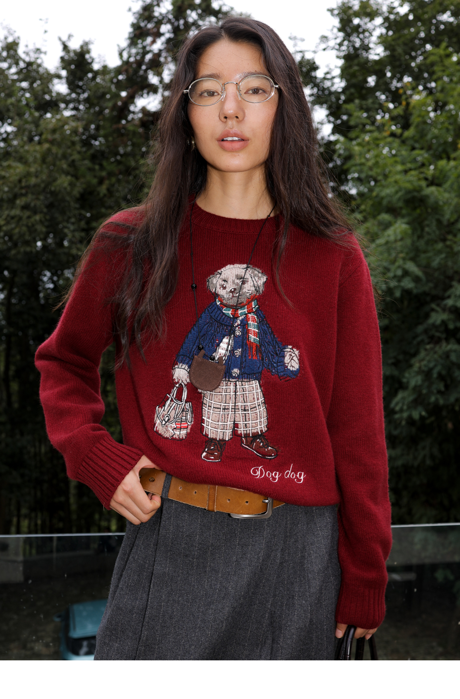 素舶 澳洲美利奴羊毛 学院小狗提花刺绣圆领百搭针织衫毛衣