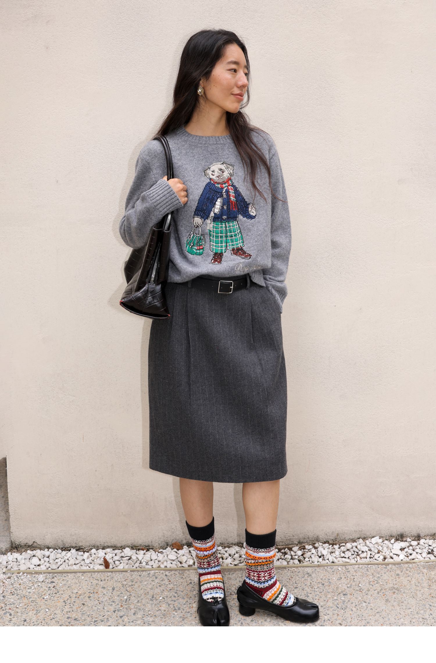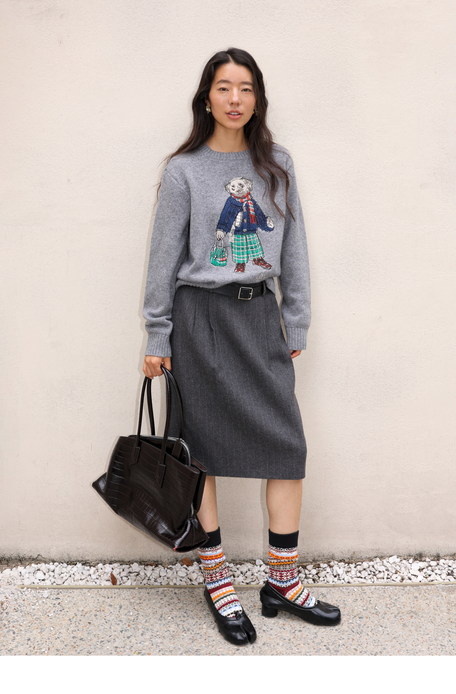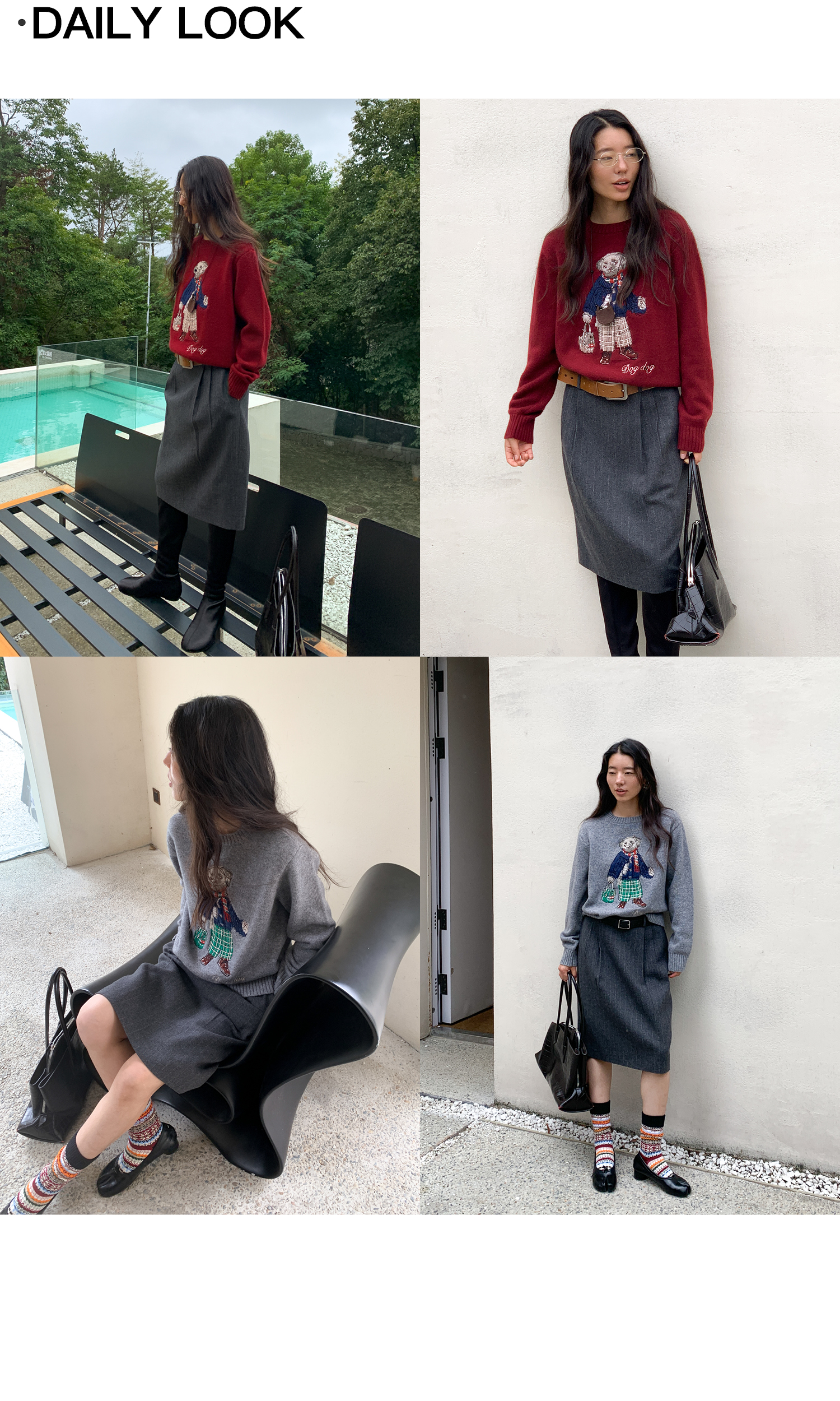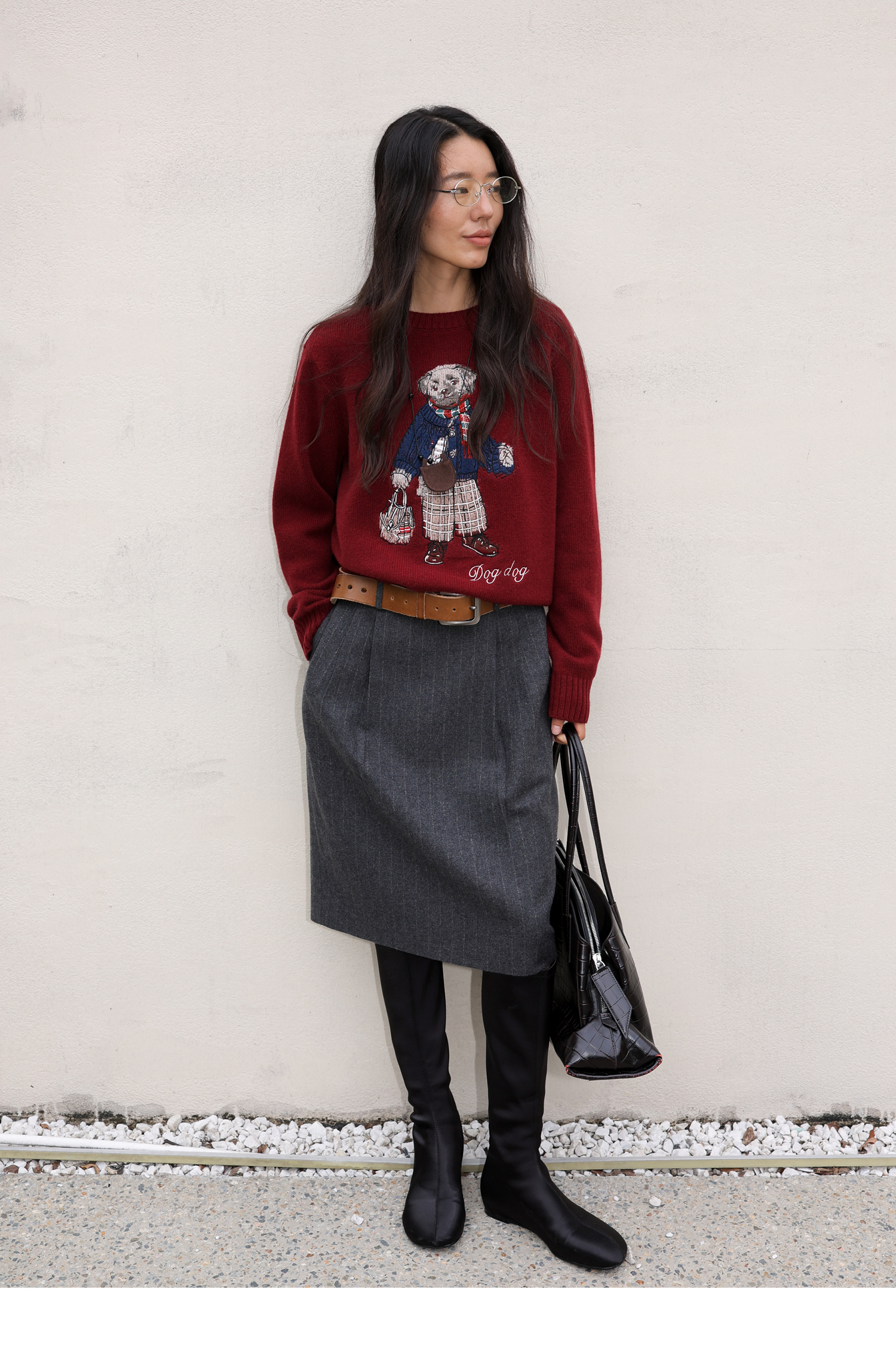 素舶 澳洲美利奴羊毛 学院小狗提花刺绣圆领百搭针织衫毛衣