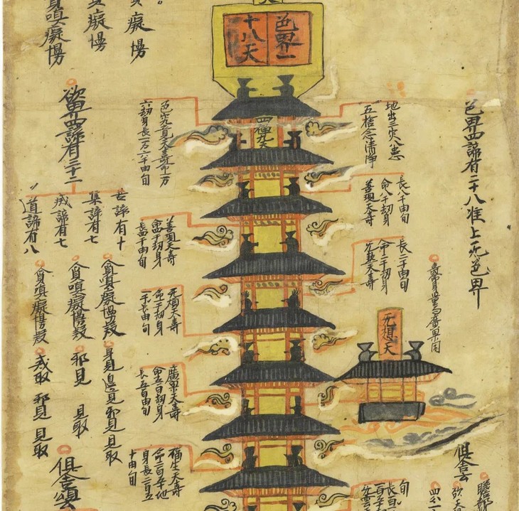 其中,法国带走的这批“遗书”质量最高、内容最精,保存也最完好,如今藏于巴黎国立图书馆。有一件文物,是目前已知的世界上最早、也最完整的“天人合一”图,它再现了禅宗眼中三界九地的景象,被联合国教科文组织评委“世界级珍宝”,有学者表示“如何能把它赎回,花多少钱都值”。