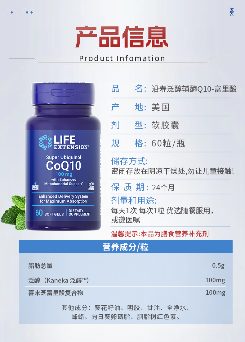 沿寿LIFE EXTENSION 超级泛醇辅酶Q10 60粒