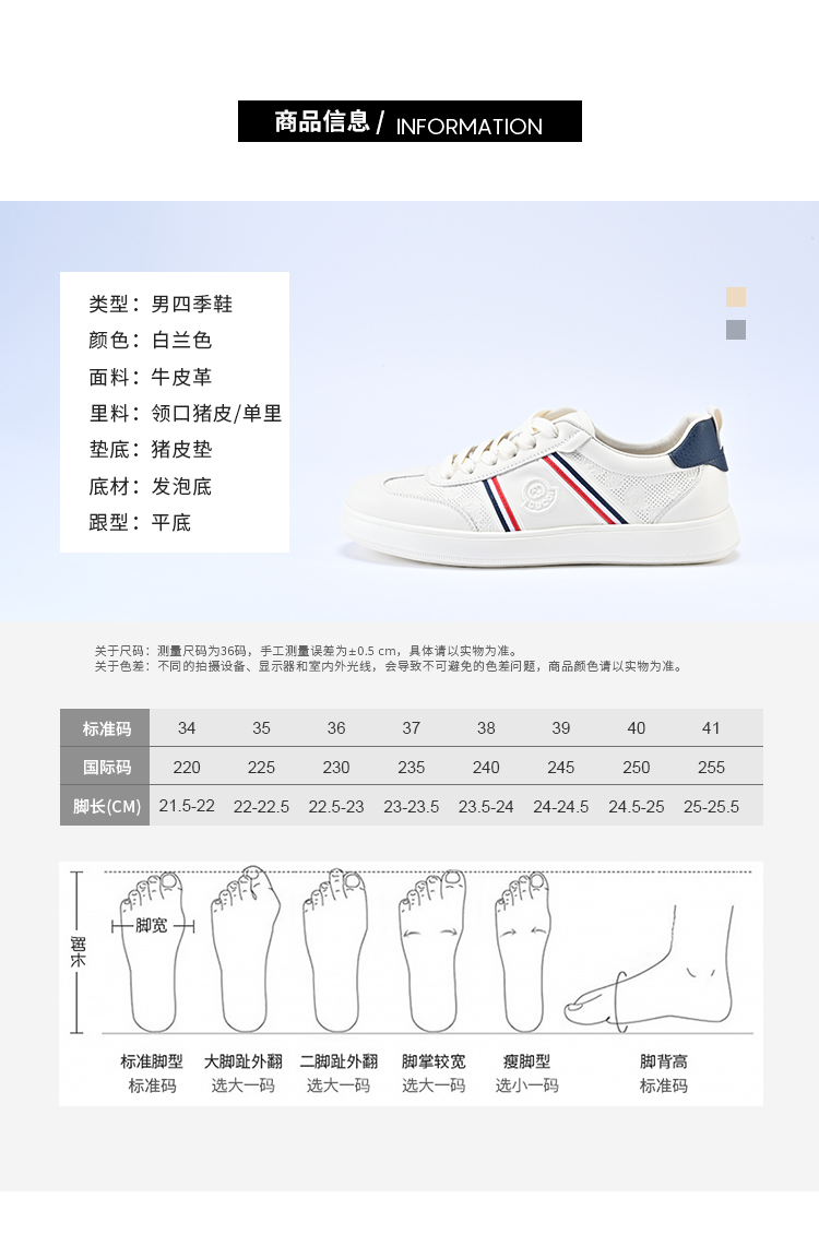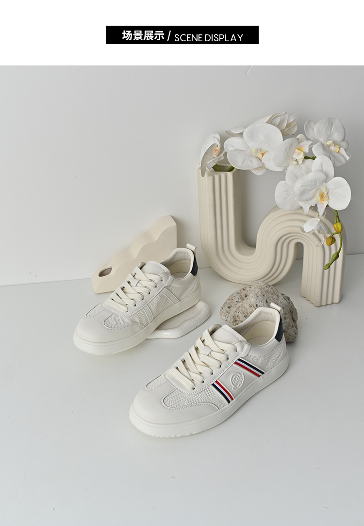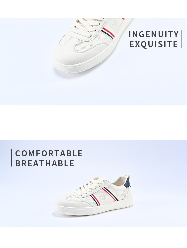 经典鲨2026年春季专柜新品男士牛皮革时尚拼色平底板鞋小白鞋KW361-626051