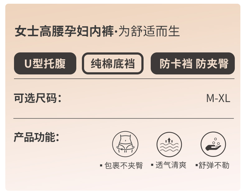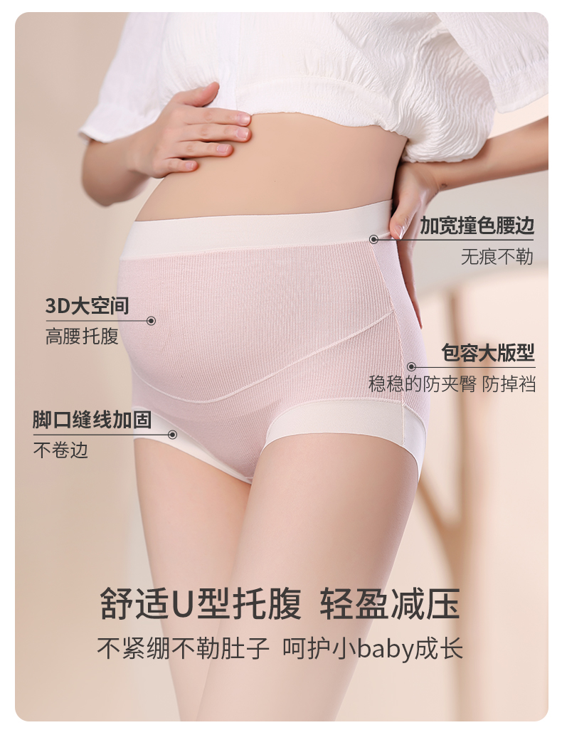 雅黛丽高腰孕妇内裤U型托腹三角裤纯棉底裆亲肤透气短裤头