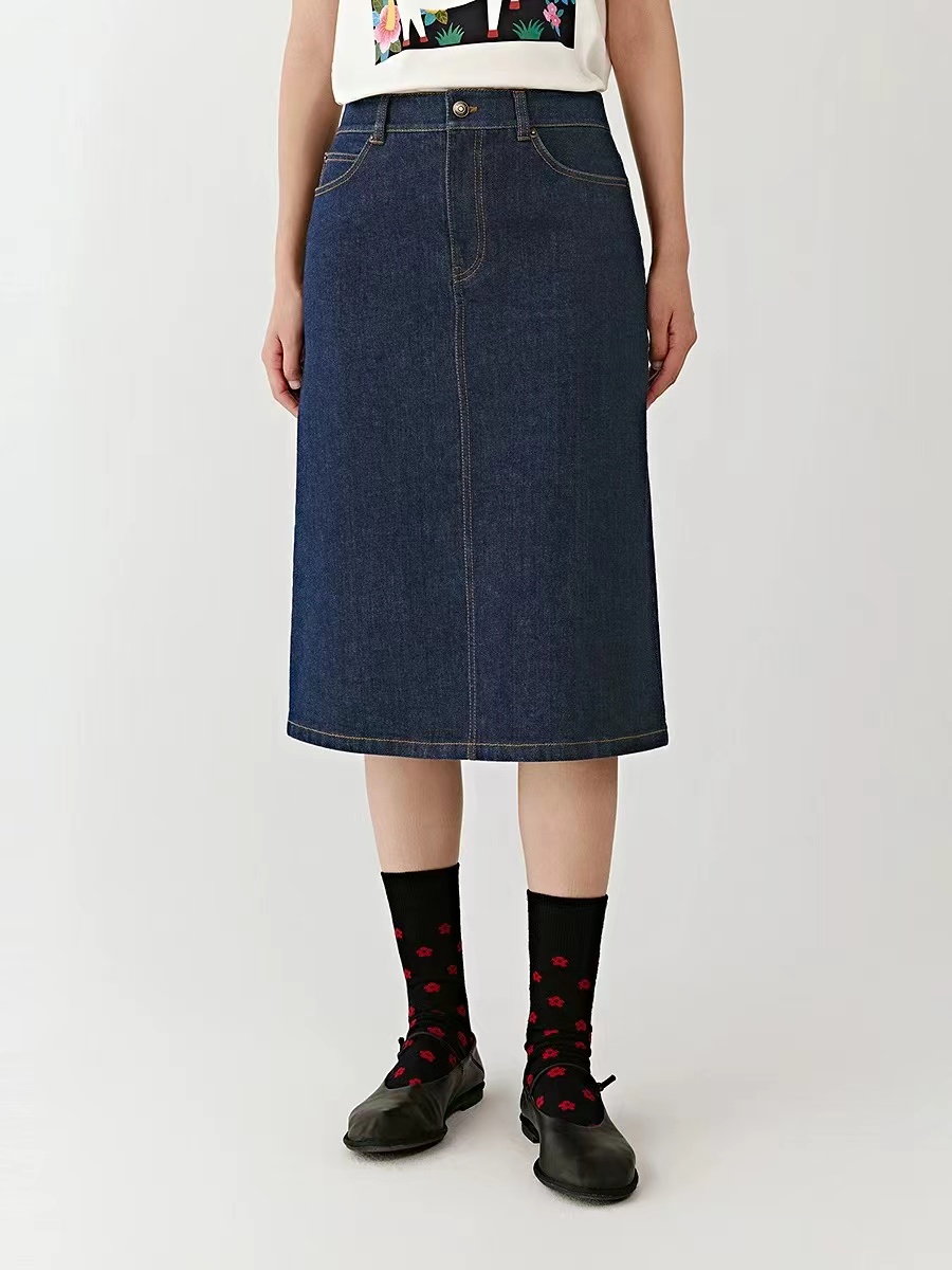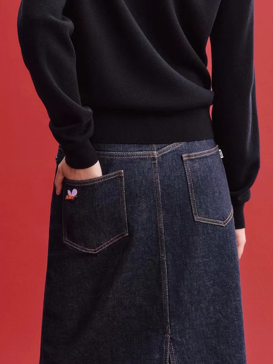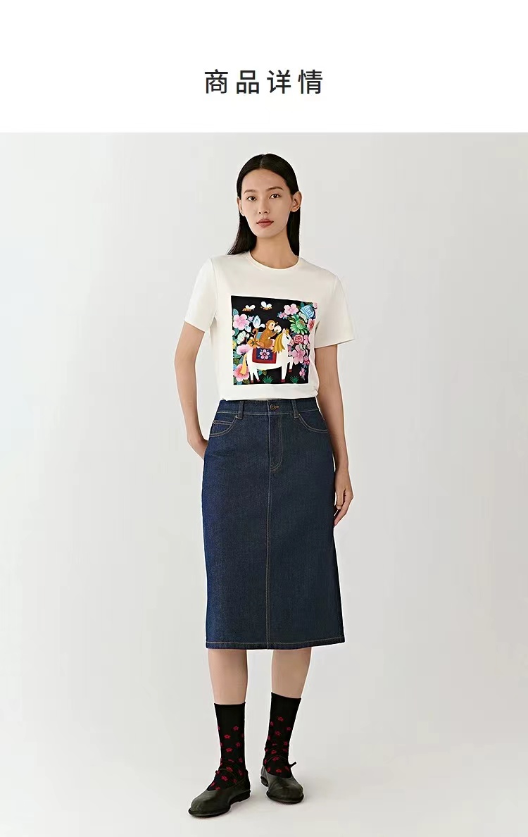 新年系列女装2026春夏新款棉弹牛仔半身裙 后口代刺绣