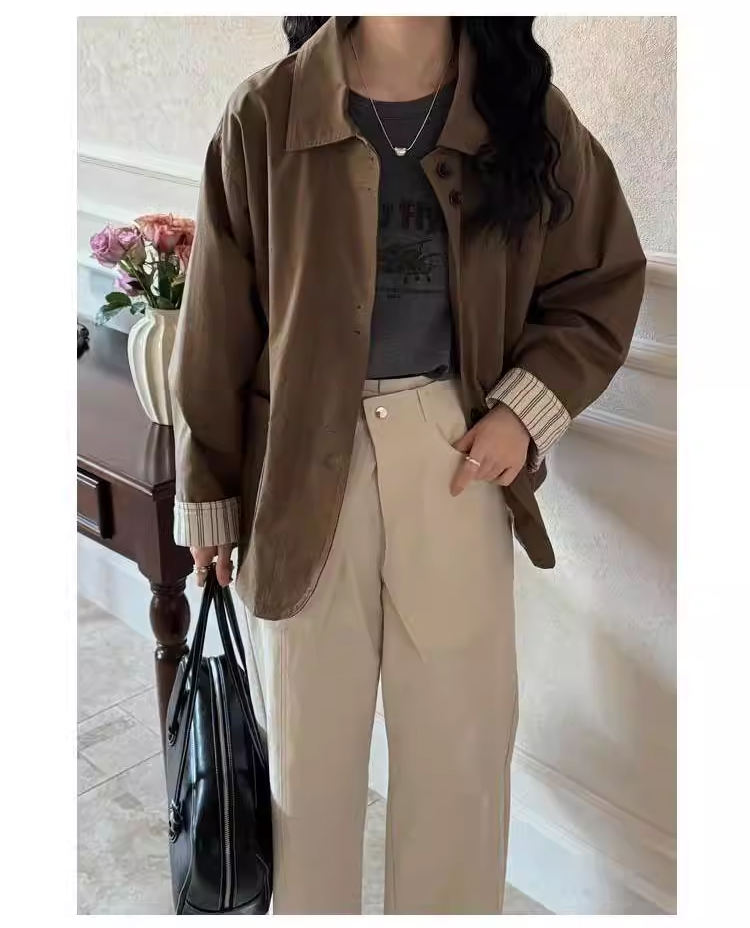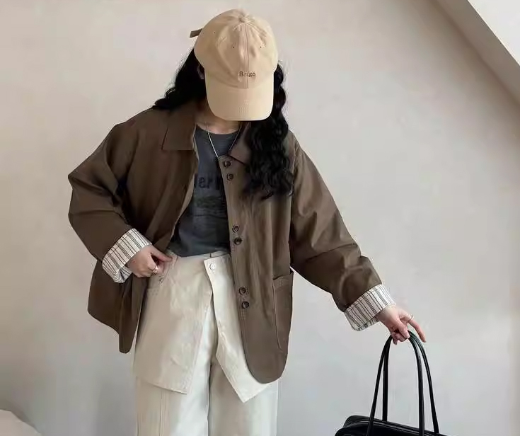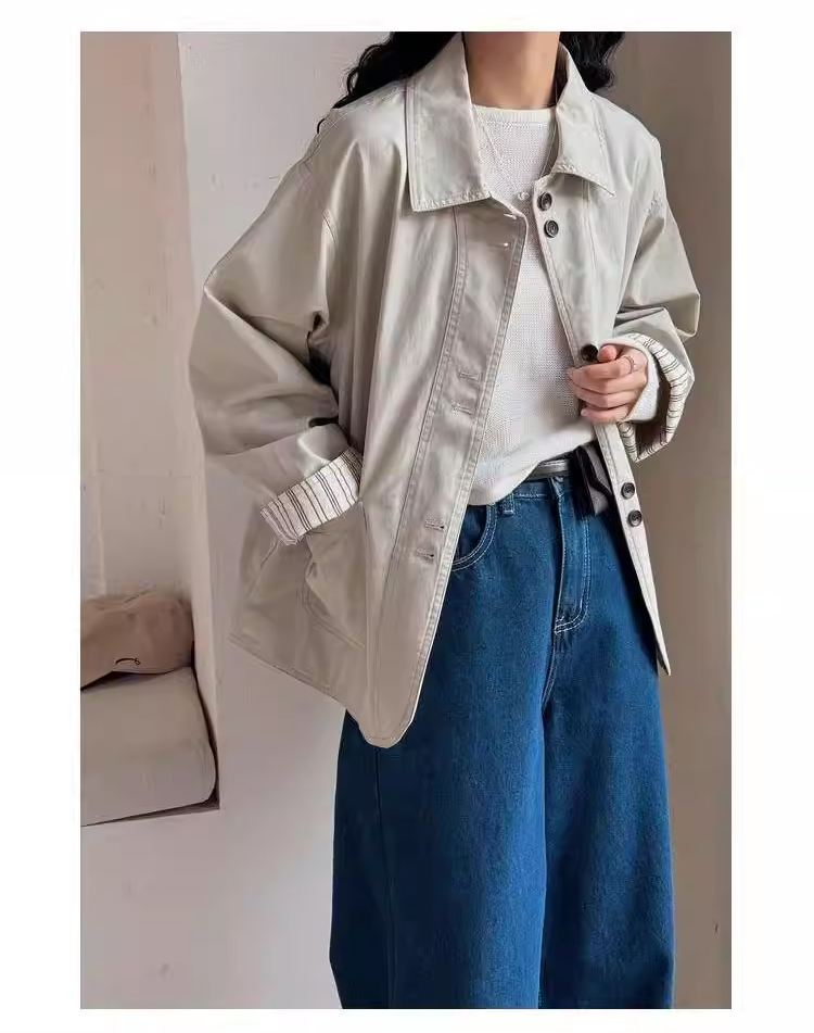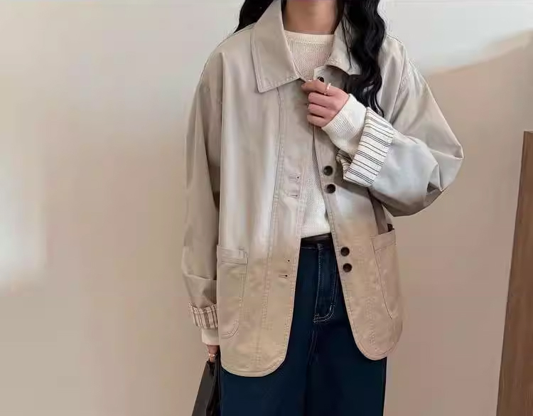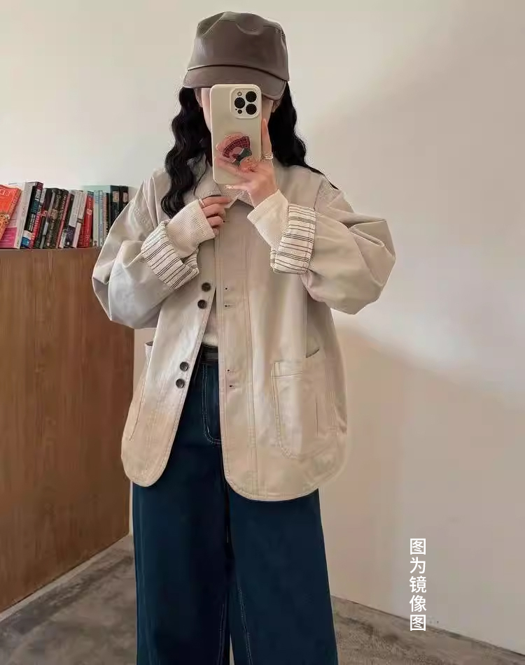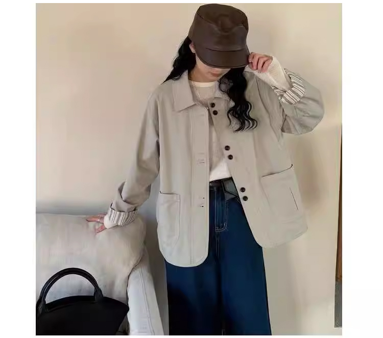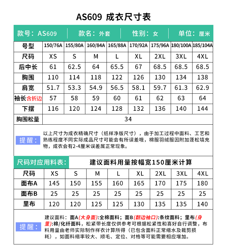 裁缝学苑AS609新款翻领大口袋拼接风衣纸样女装工装短上衣外套样板