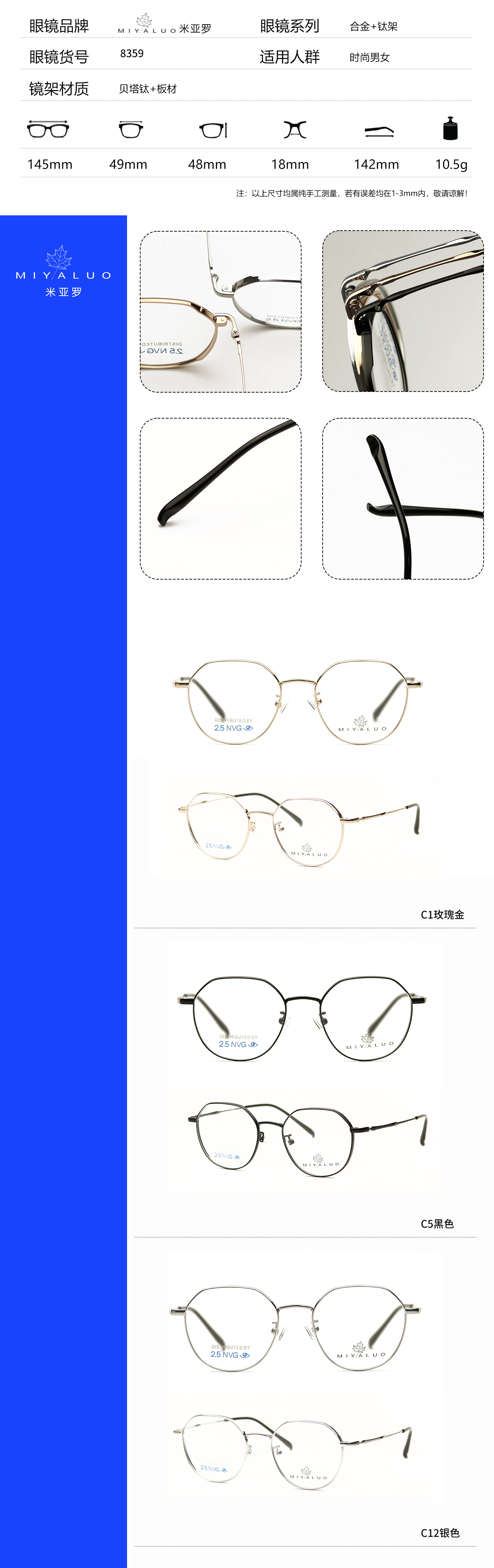DSG08359 米亚罗MIYALUO 新款光学镜架 全钛合金钛架 DSG08359