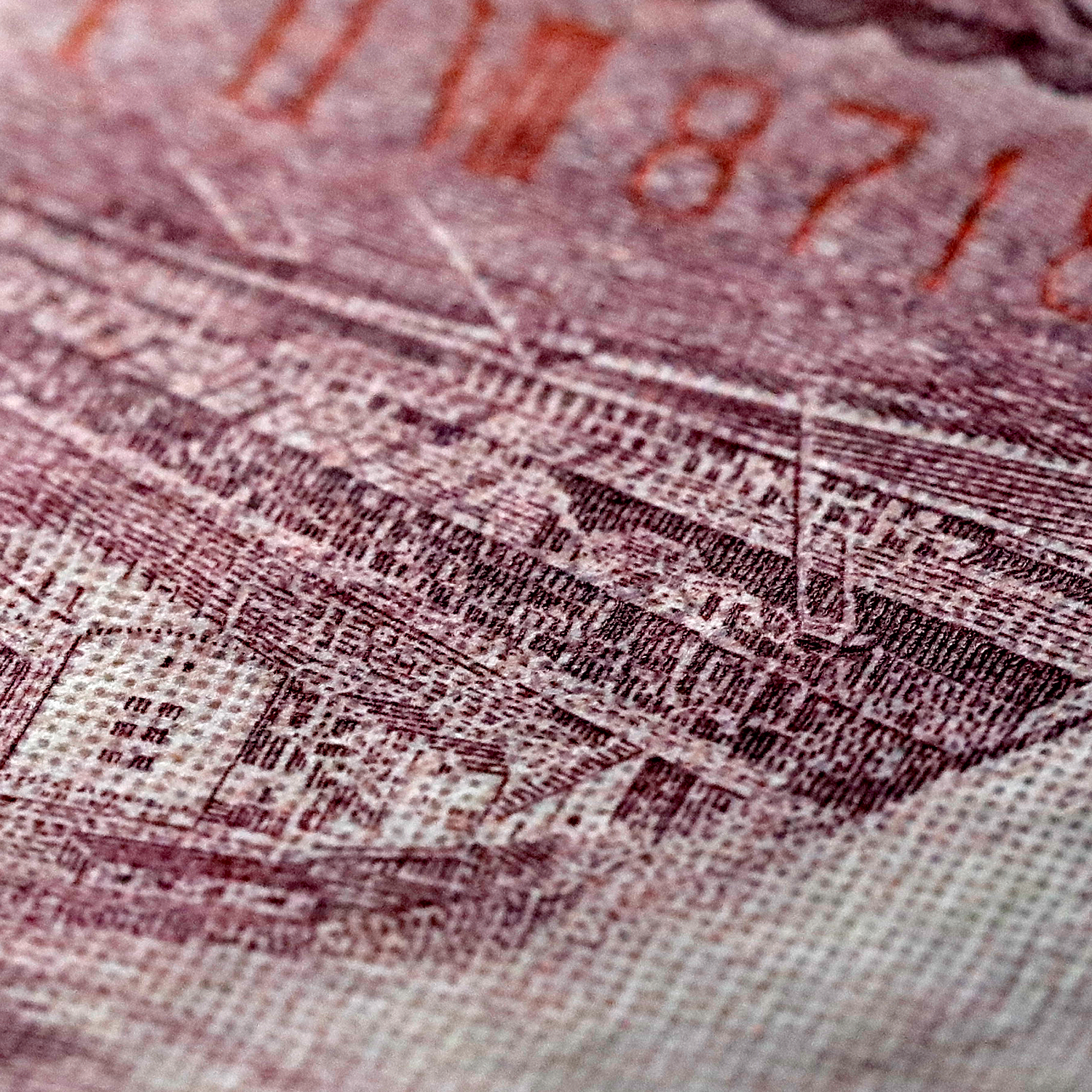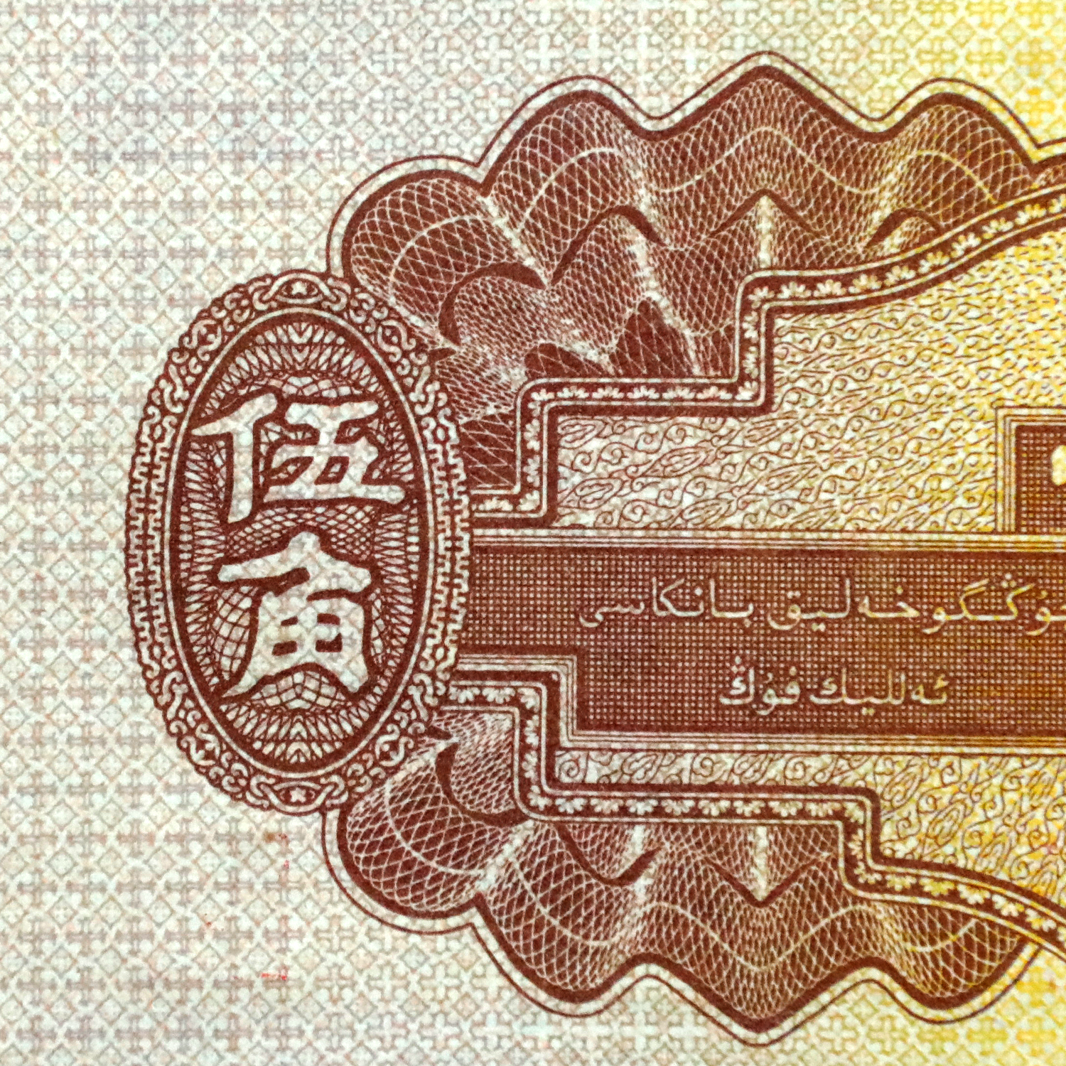 浅水坝使用的钞纸是苏联进口满版空心五角星水印钞票纸,带有水印且印刷颜色较浅,这也造就了其独特的防伪技术。