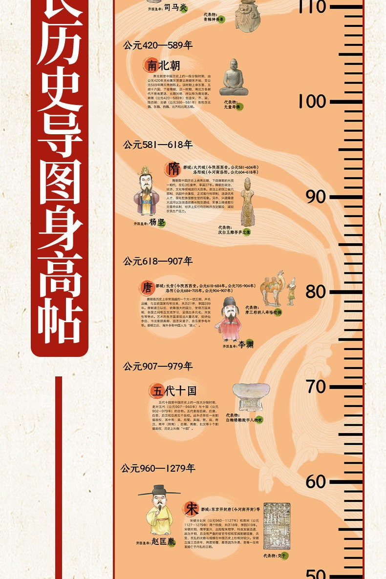 给孩子的的中国历史思维导图身高贴 漫画中国大事记 给孩子的中国历史上下五千年画册思维导图 儿童房墙贴画 中国历史画卷漫画版
