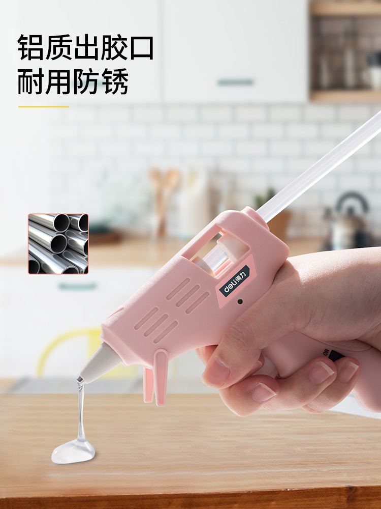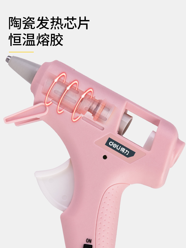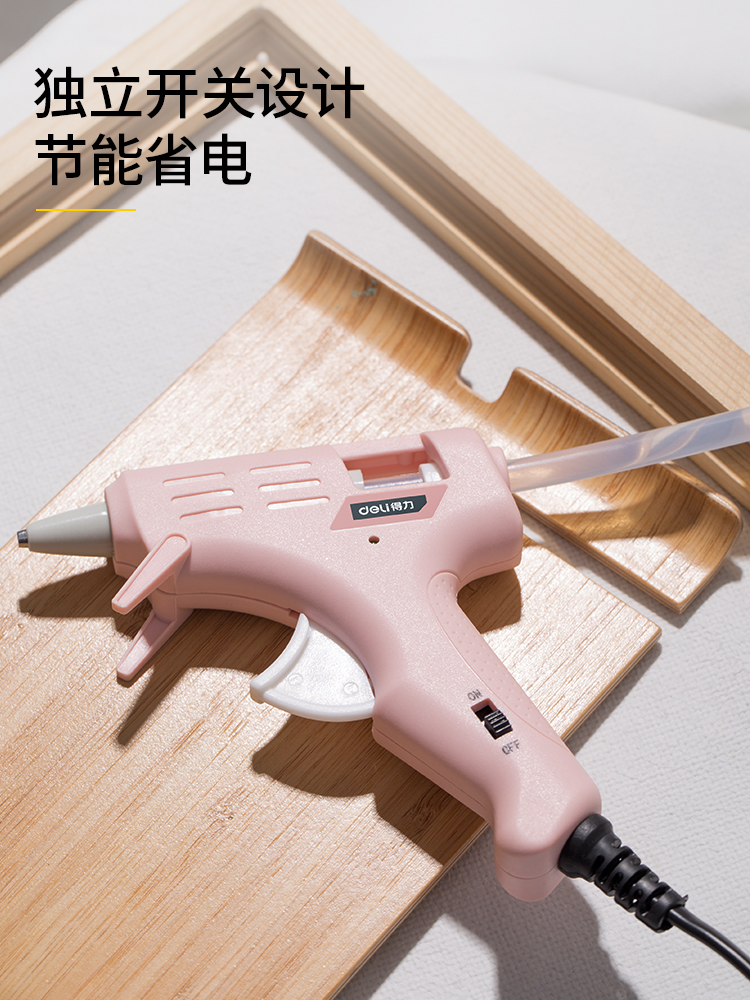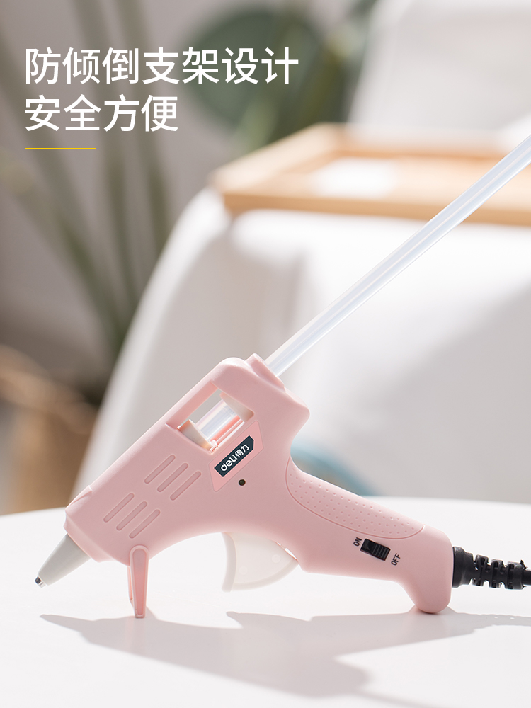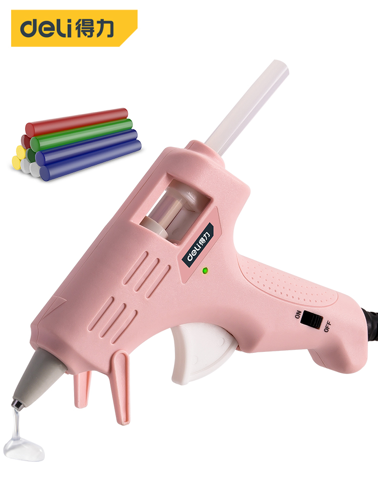 得力DL390022热熔胶枪带10支胶棒(粉)