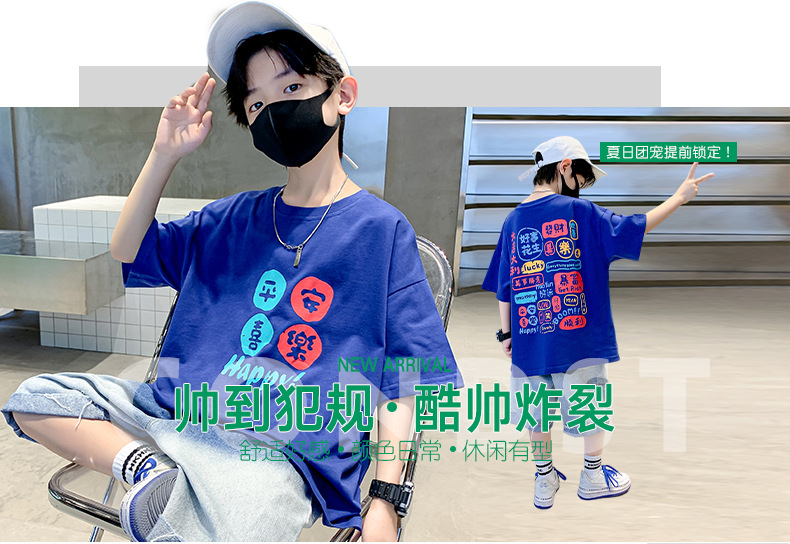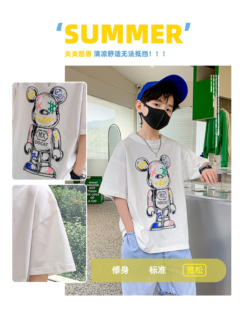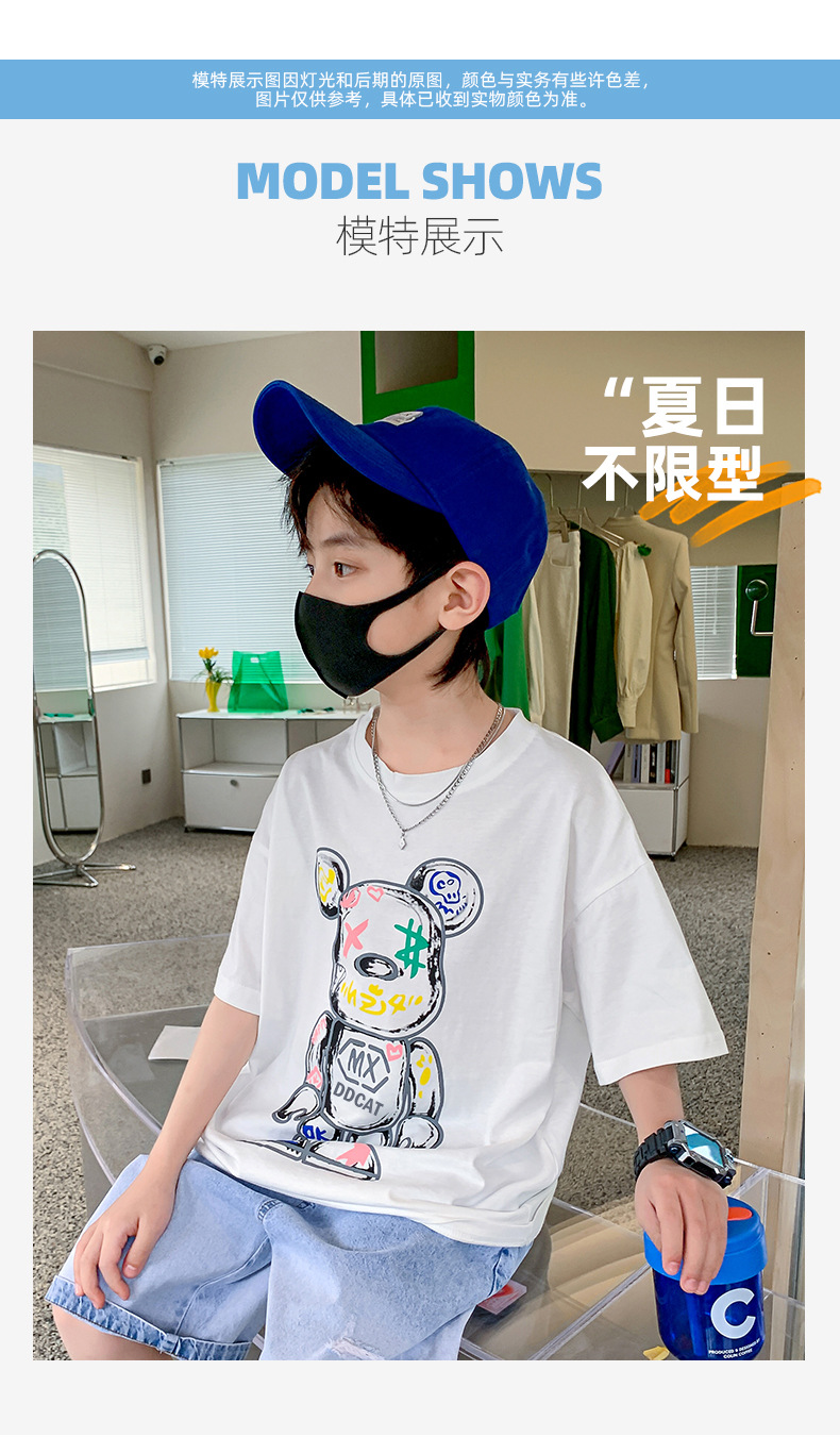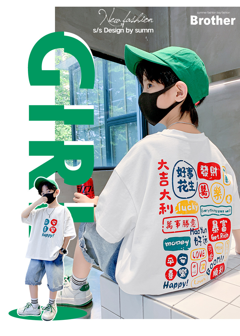 【59.9任选2件 单拍不发】男童女童潮牌洋气棉质短袖t恤夏装新款中大童圆领打底衫儿童休闲上衣_ym