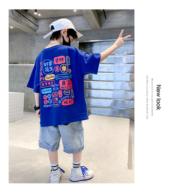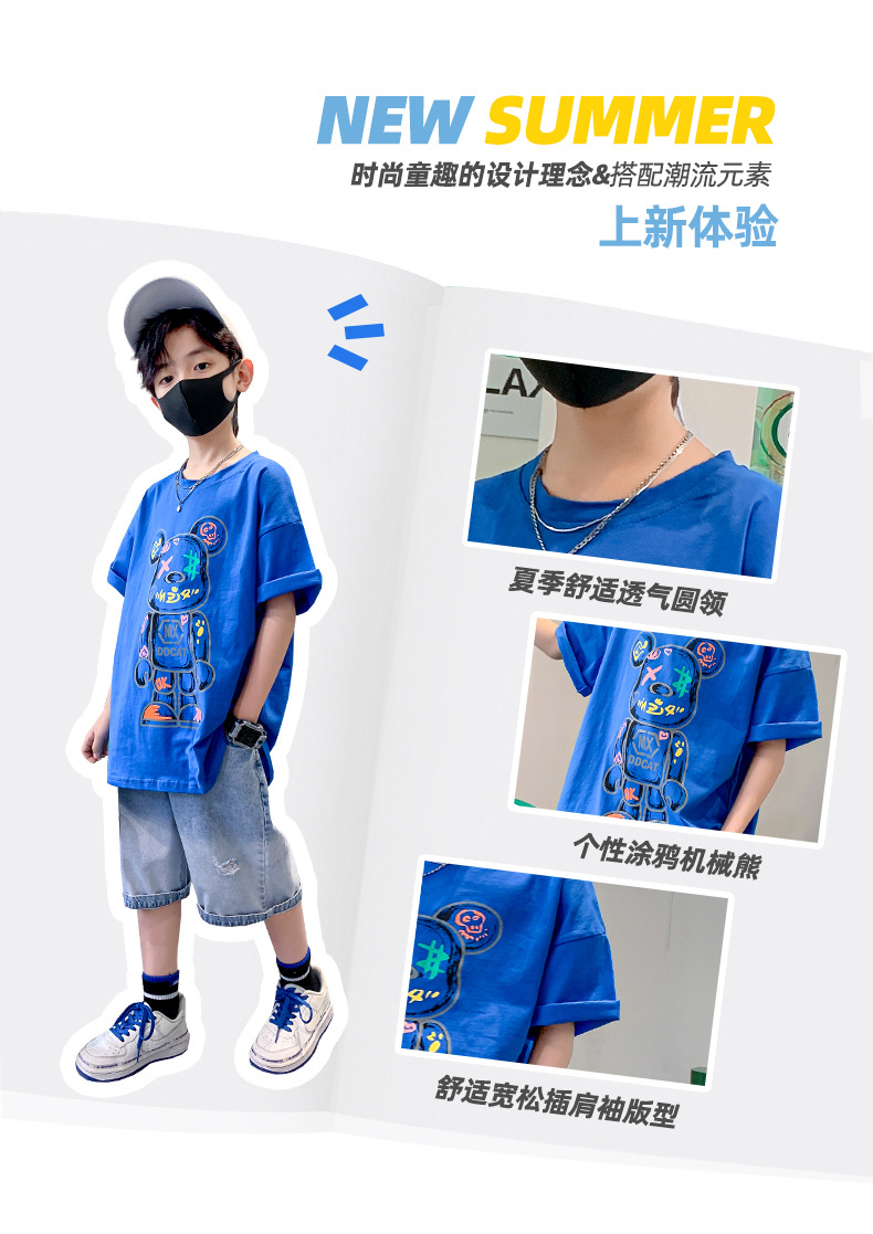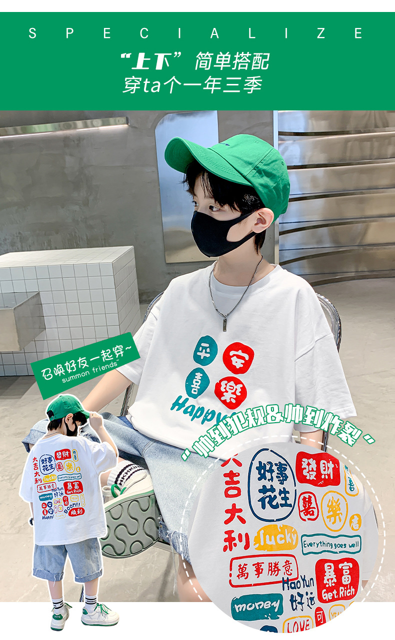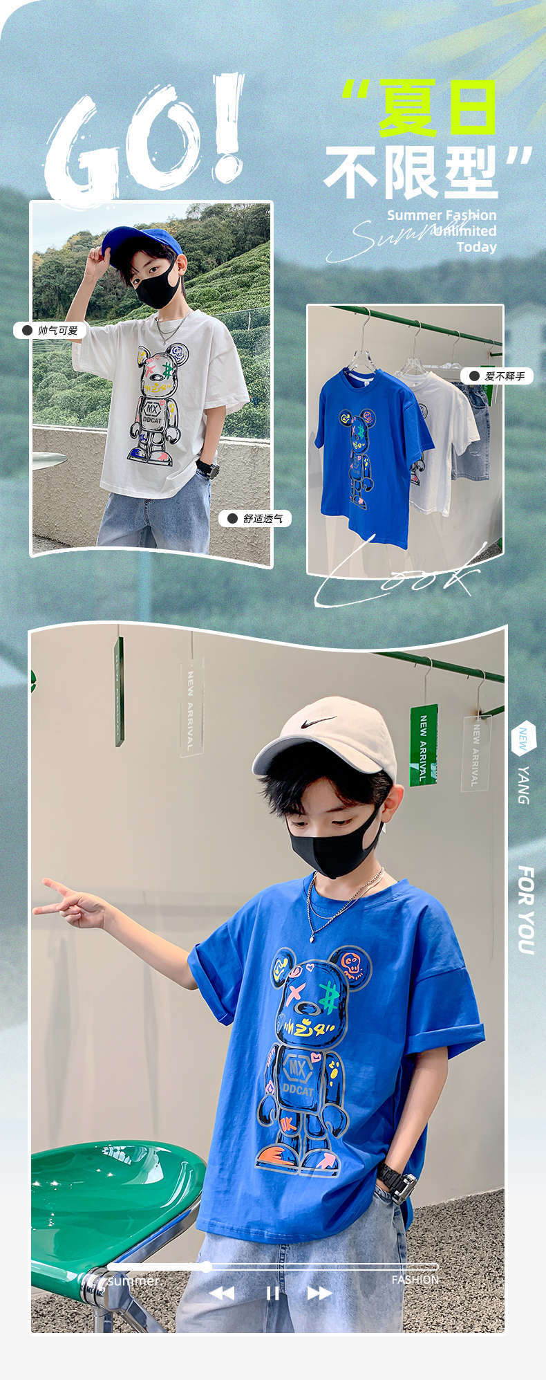 【59.9任选2件 单拍不发】男童女童潮牌洋气棉质短袖t恤夏装新款中大童圆领打底衫儿童休闲上衣_ym