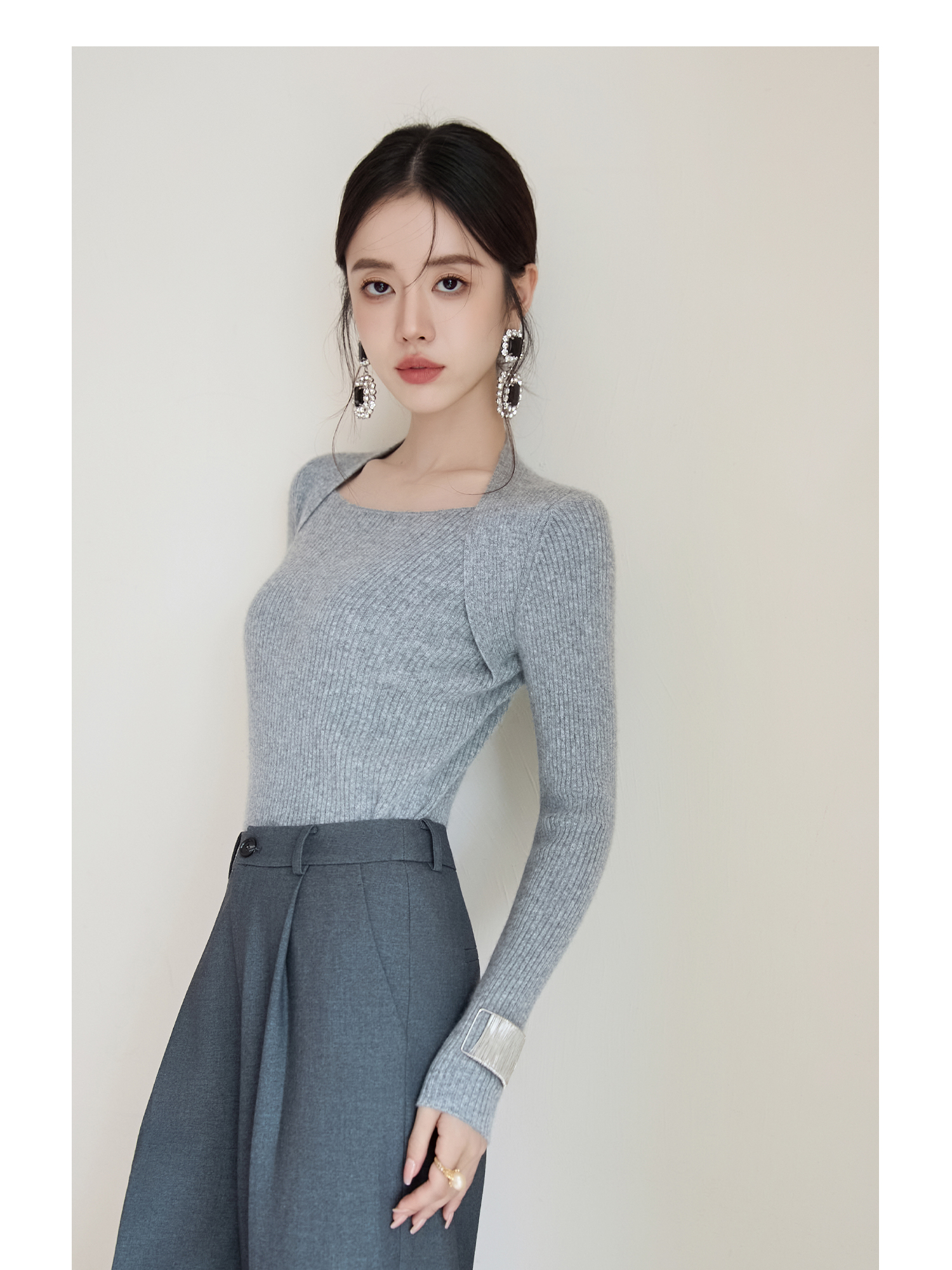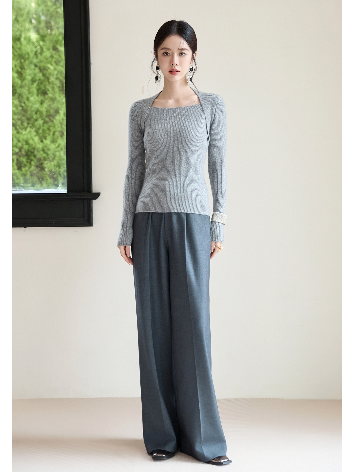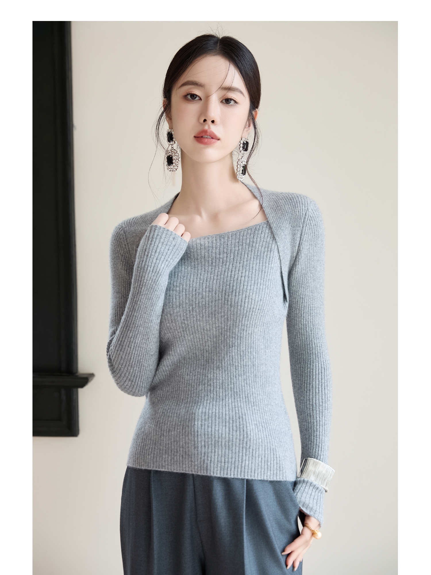 FUYAO扶摇 弹力显瘦羊绒衫女2025冬新款针织衫显瘦露锁骨纯羊毛衫