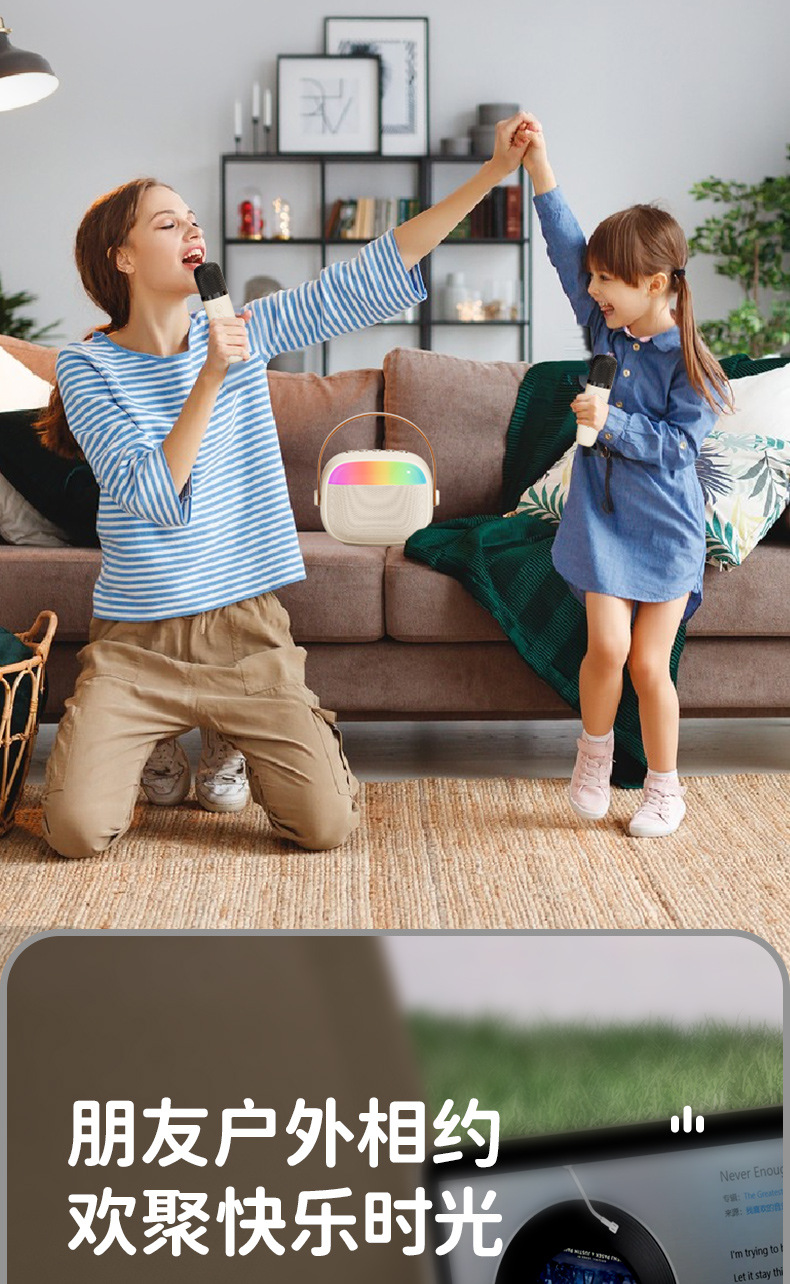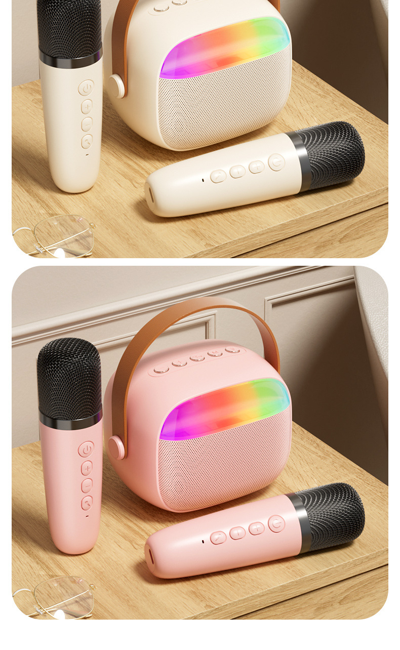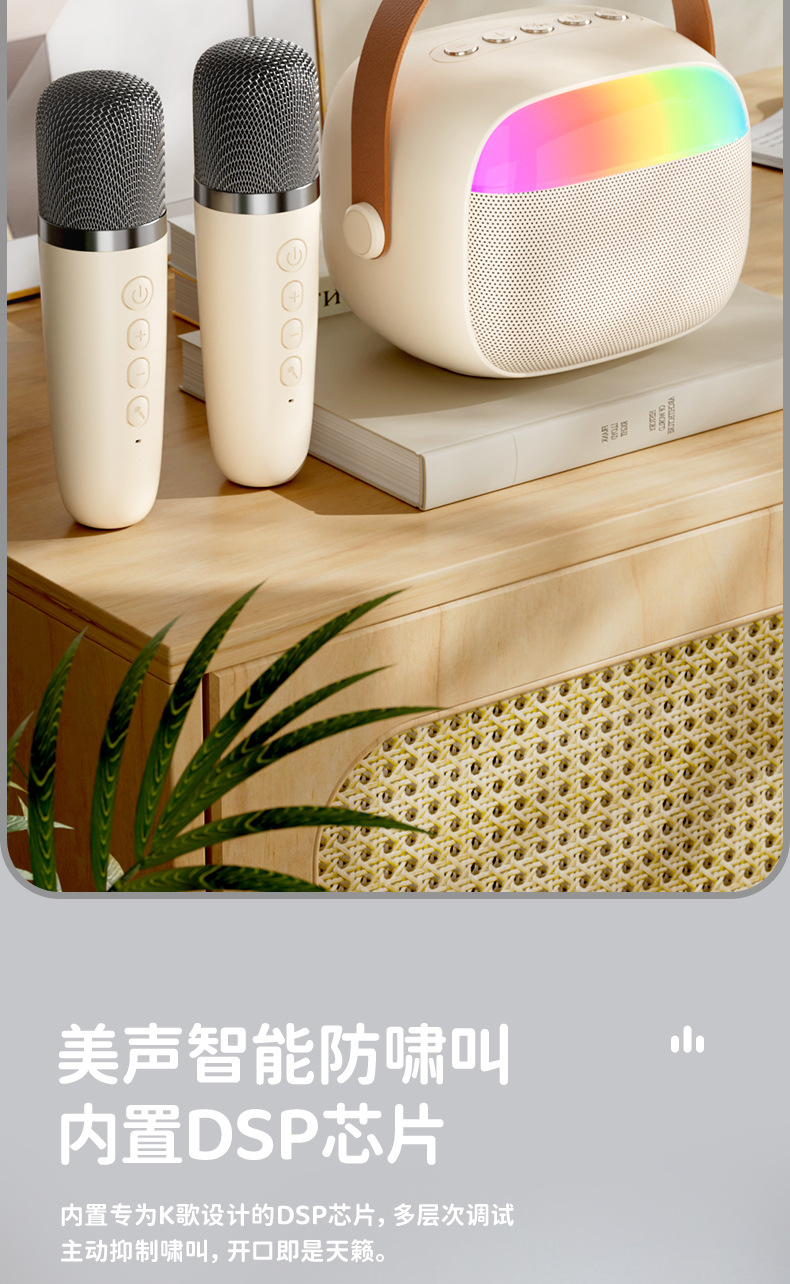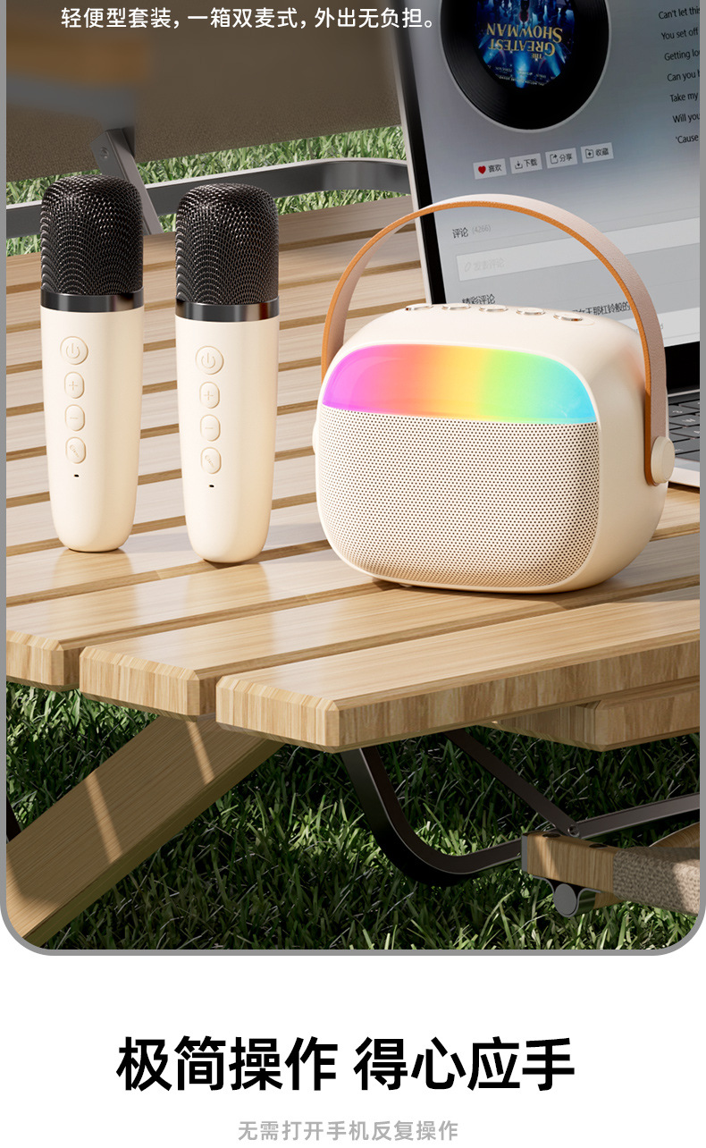 严选【环绕音效便携带灯一体音箱】k30双麦米白蓝牙K歌无线麦克风话筒户外儿童家庭音响套装