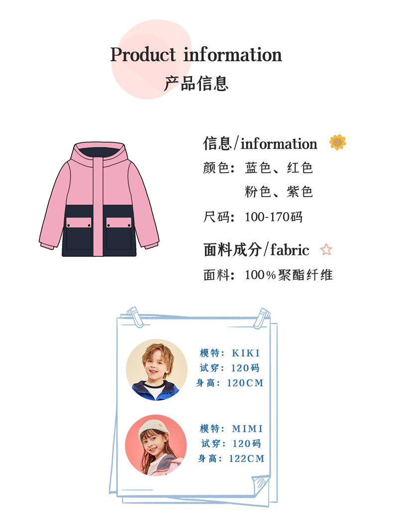 【24年特价清仓】龙之涵 亲子款儿童活力撞色恒温保暖连帽防风棉服 A类标准